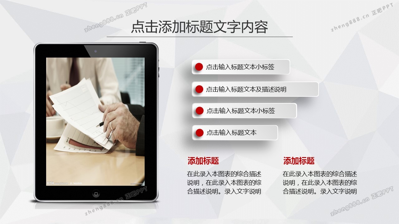 欢迎您访问【正吧PPT】,我们致力于为设计师和泛办公人群提供分享PPT作品。内容涵盖了商业策划、报告总结、教育培训、公务党建等方面的演示模板