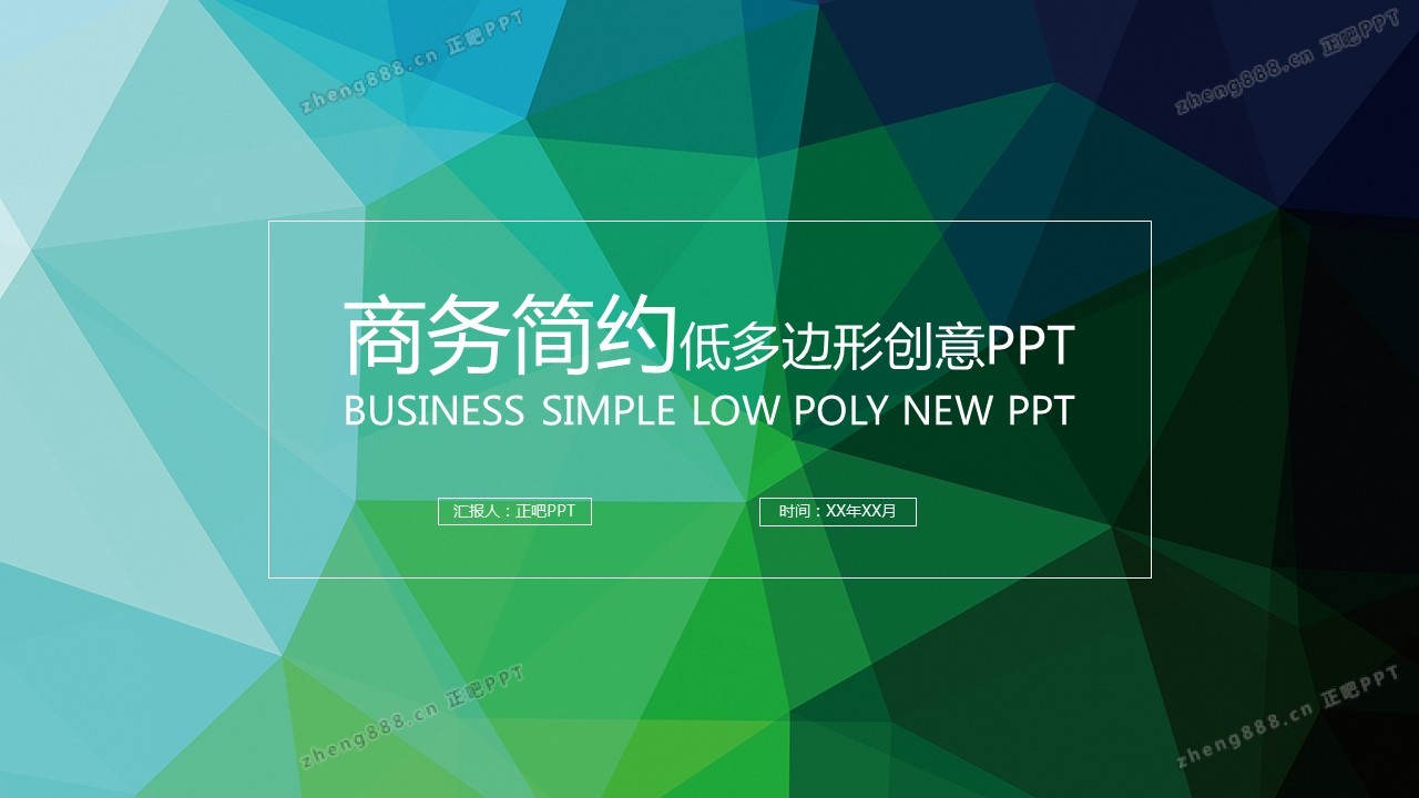 绿色商务创意低多边形PPT模板