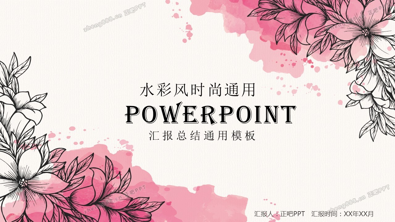 水彩风简约通用ppt通用模板
