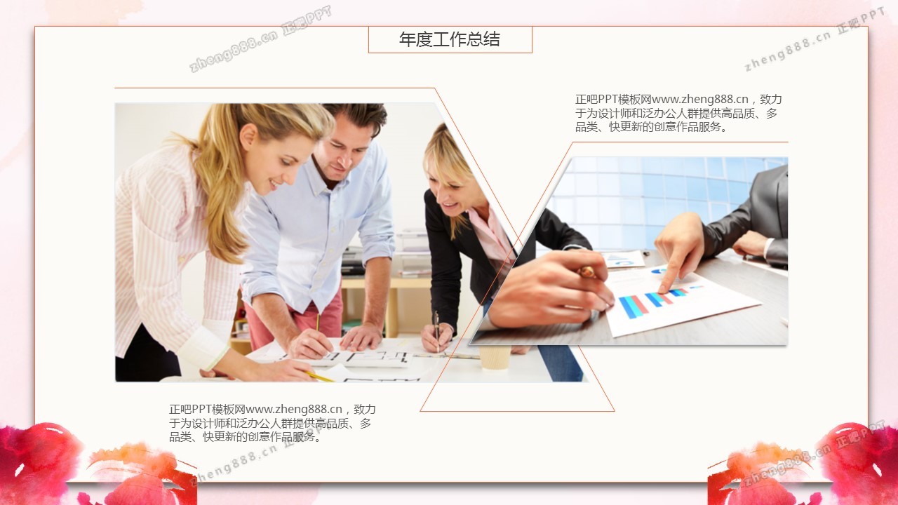 欢迎您访问【正吧PPT】,我们致力于为设计师和泛办公人群提供分享PPT作品。内容涵盖了商业策划、报告总结、教育培训、公务党建等方面的演示模板