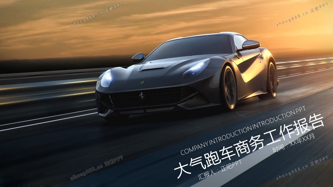 大气汽车跑车品牌宣传工作报告PPT模板