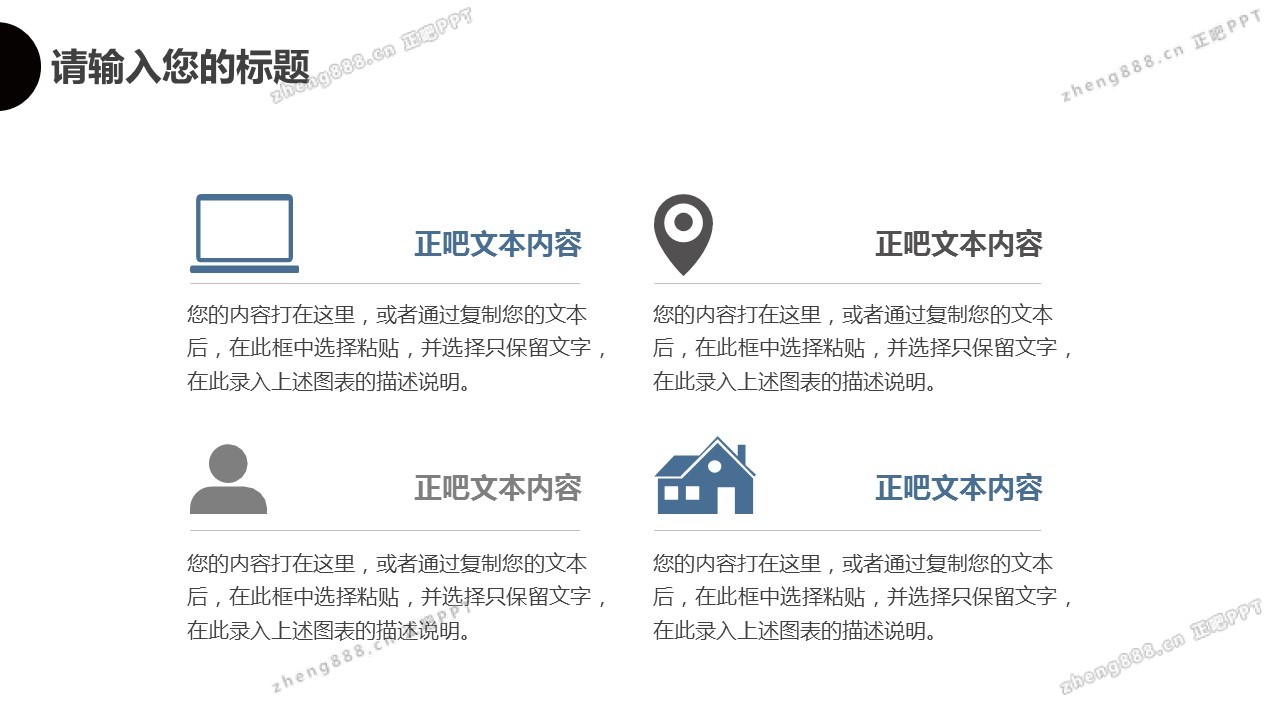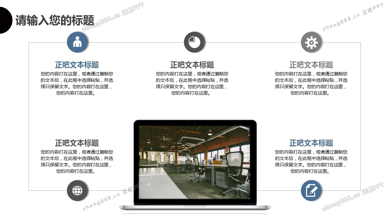 欢迎您访问【正吧PPT】,我们致力于为设计师和泛办公人群提供分享PPT作品。内容涵盖了商业策划、报告总结、教育培训、公务党建等方面的演示模板