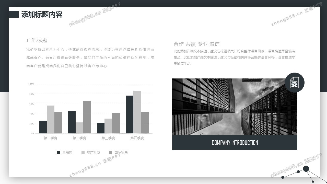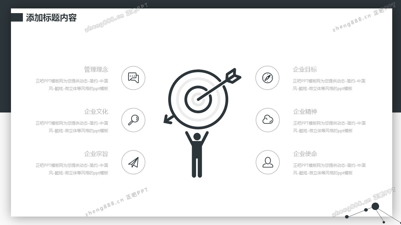 欢迎您访问【正吧PPT】,我们致力于为设计师和泛办公人群提供分享PPT作品。内容涵盖了商业策划、报告总结、教育培训、公务党建等方面的演示模板