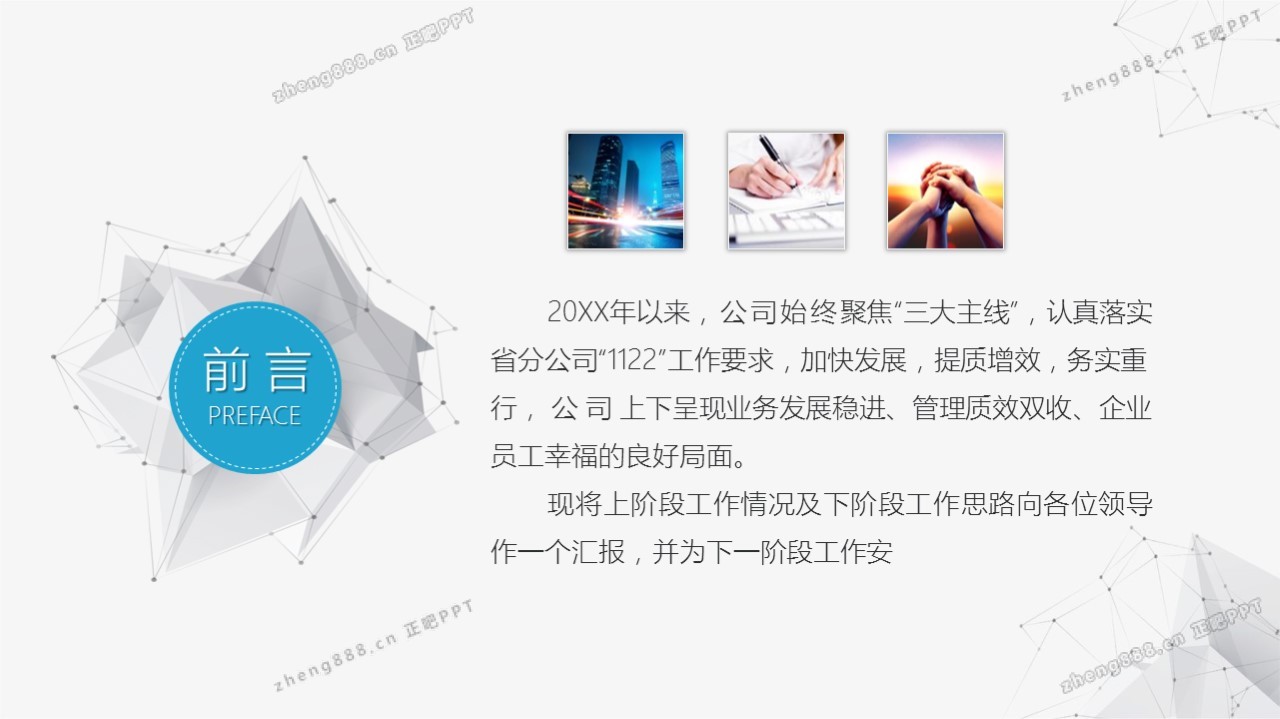 欢迎您访问【正吧PPT】,我们致力于为设计师和泛办公人群提供分享PPT作品。内容涵盖了商业策划、报告总结、教育培训、公务党建等方面的演示模板