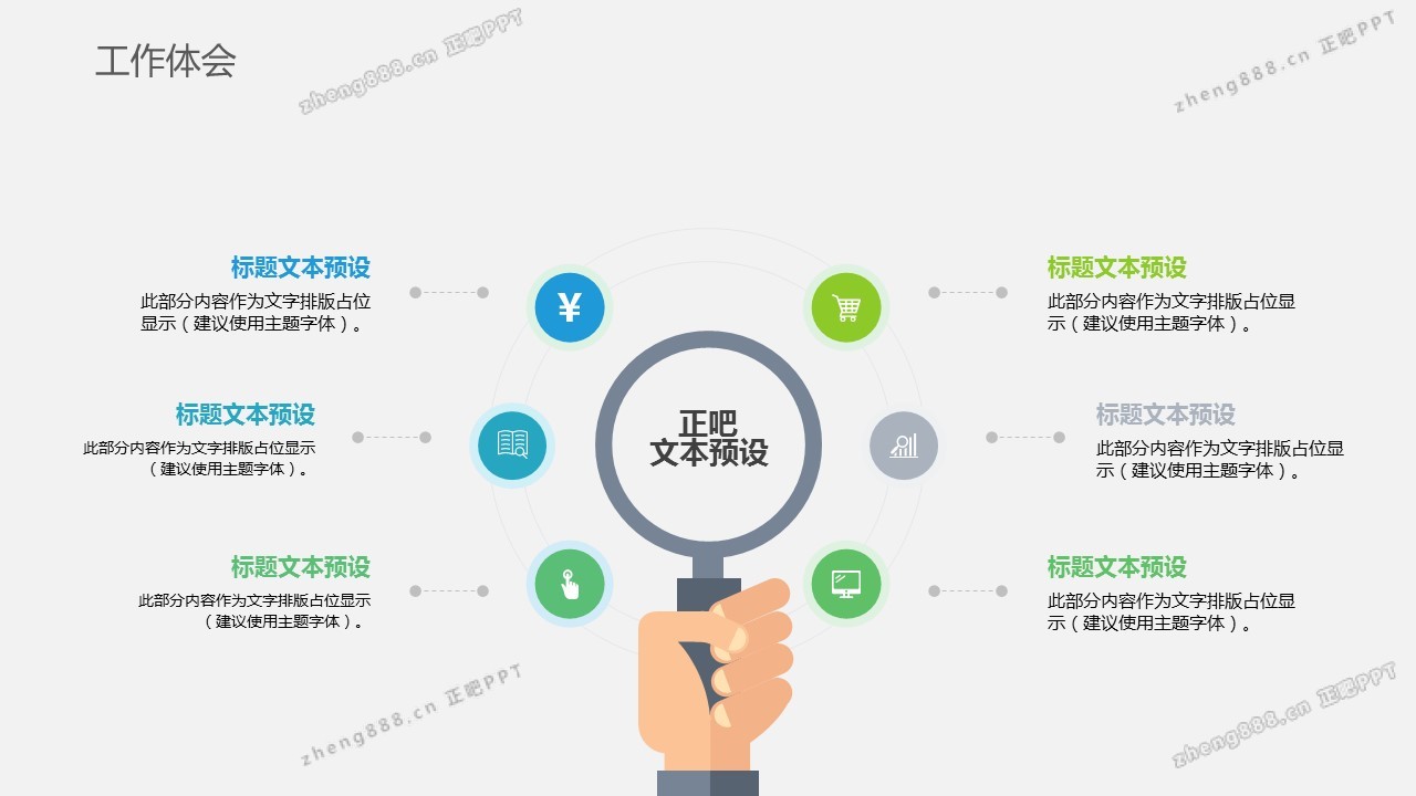 欢迎您访问【正吧PPT】,我们致力于为设计师和泛办公人群提供分享PPT作品。内容涵盖了商业策划、报告总结、教育培训、公务党建等方面的演示模板