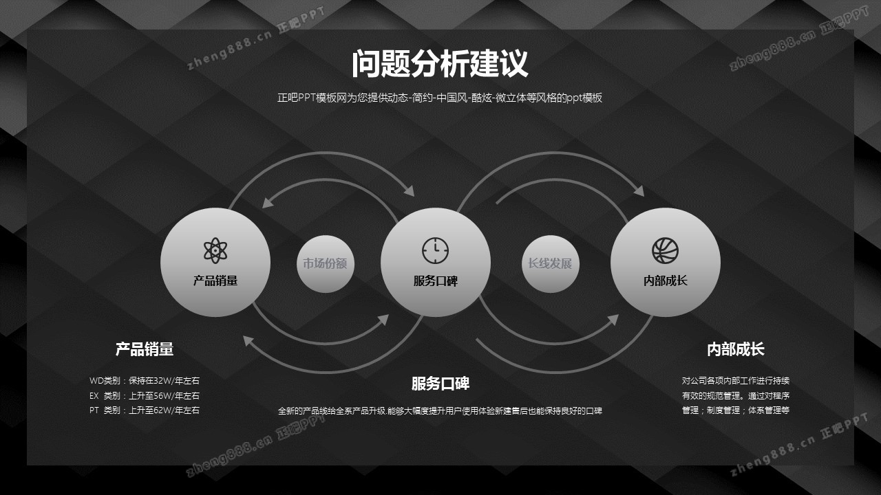 欢迎您访问【正吧PPT】,我们致力于为设计师和泛办公人群提供分享PPT作品。内容涵盖了商业策划、报告总结、教育培训、公务党建等方面的演示模板