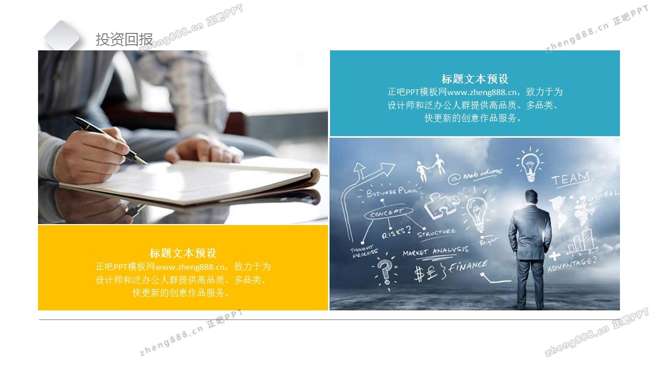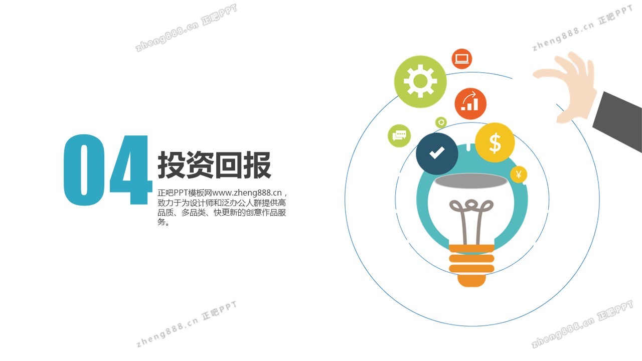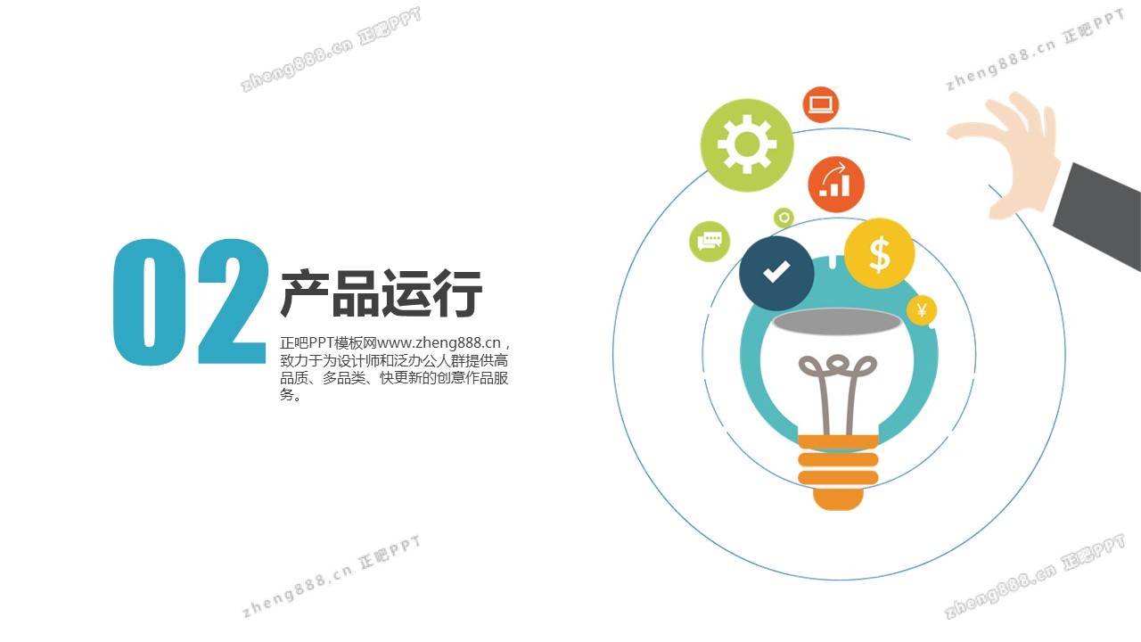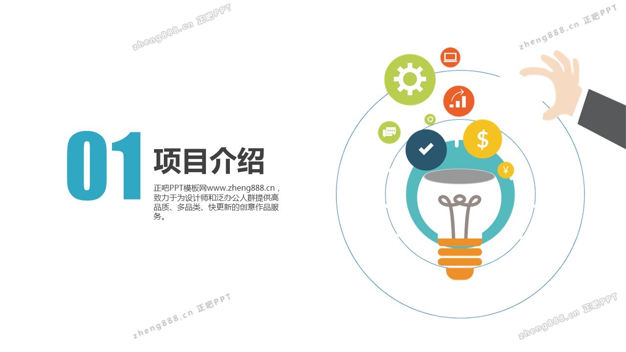欢迎您访问【正吧PPT】,我们致力于为设计师和泛办公人群提供分享PPT作品。内容涵盖了商业策划、报告总结、教育培训、公务党建等方面的演示模板