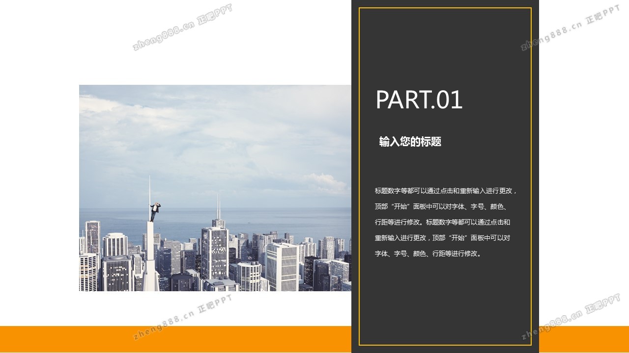 简约黑橙商汇报通用PPT模板