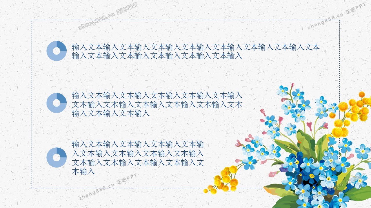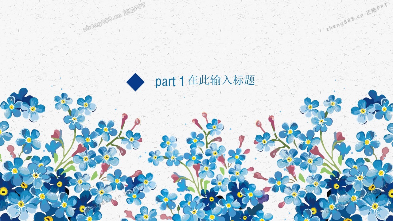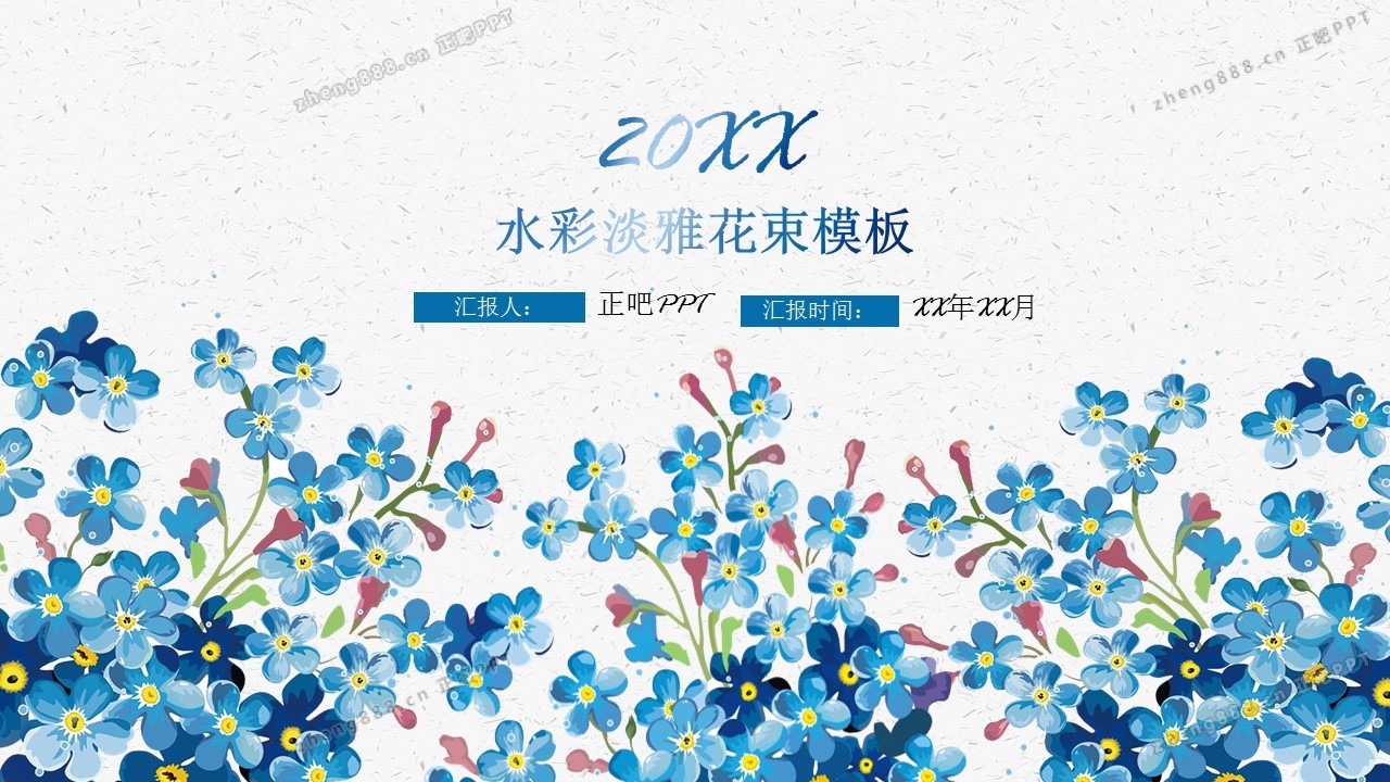 蓝色碎花水彩淡雅花束工作总结PPT模板