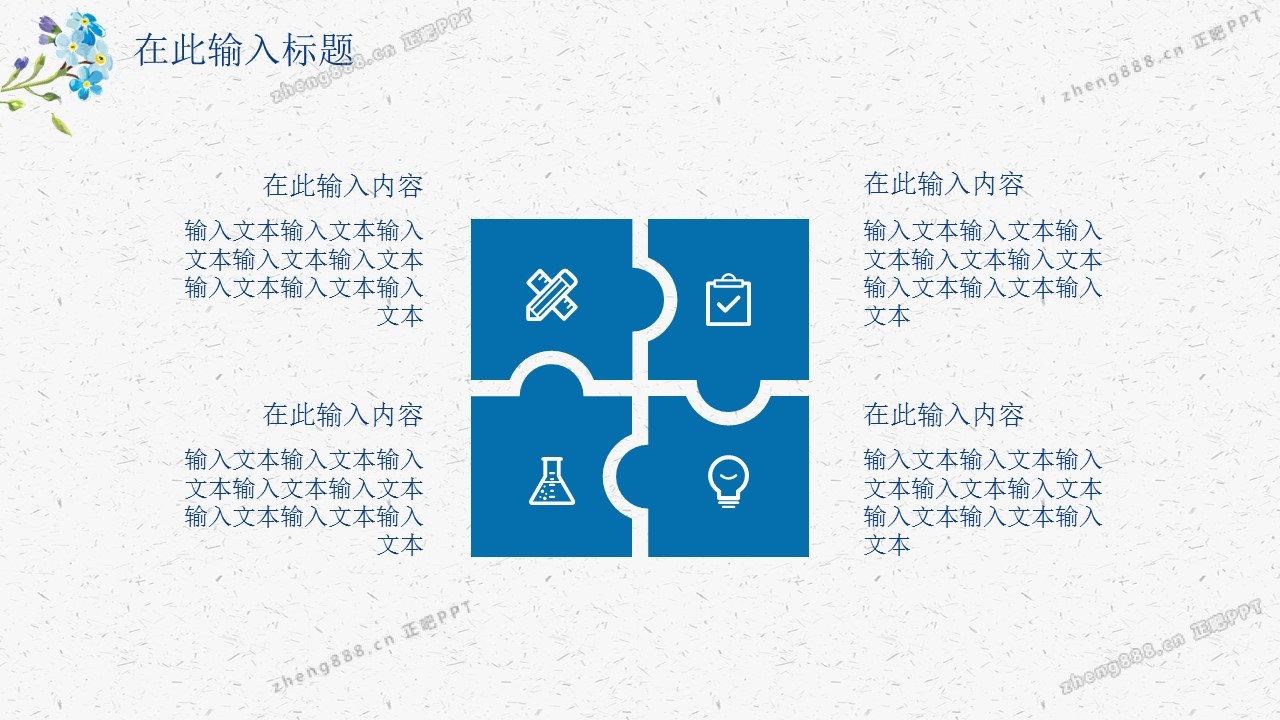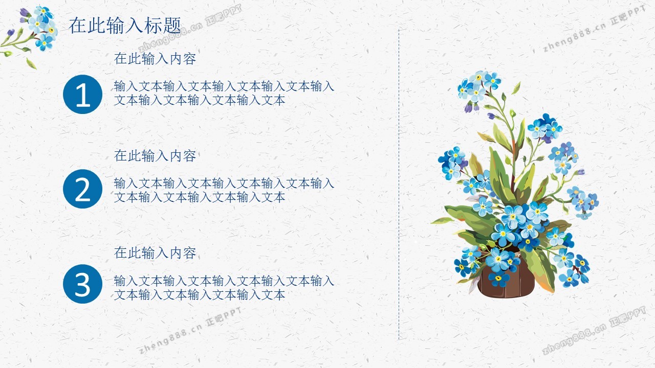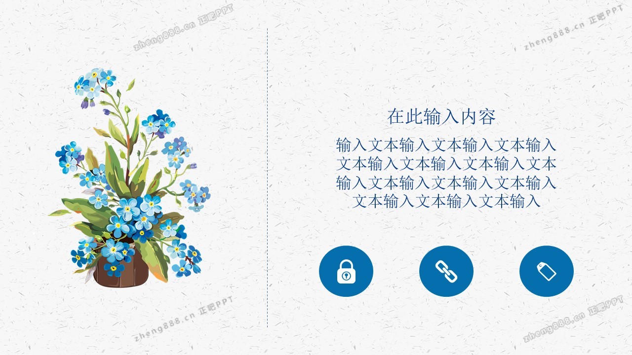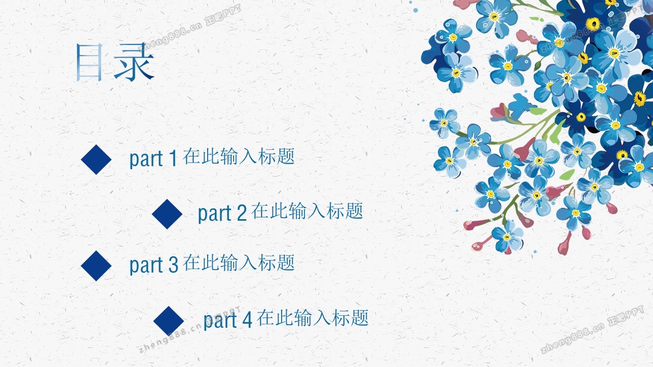 蓝色碎花水彩淡雅花束工作总结PPT模板
