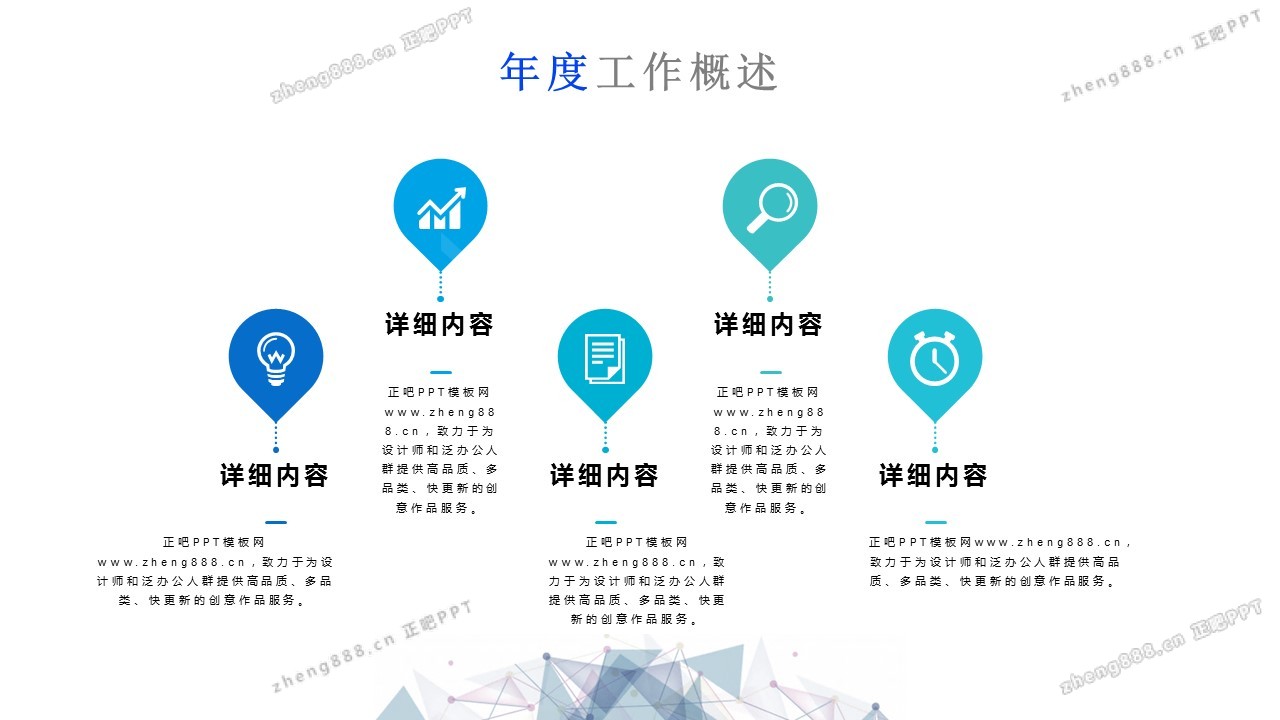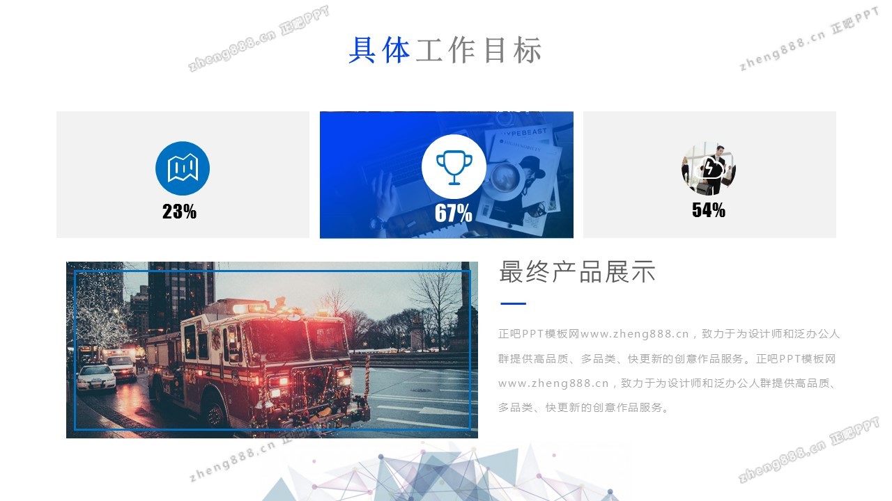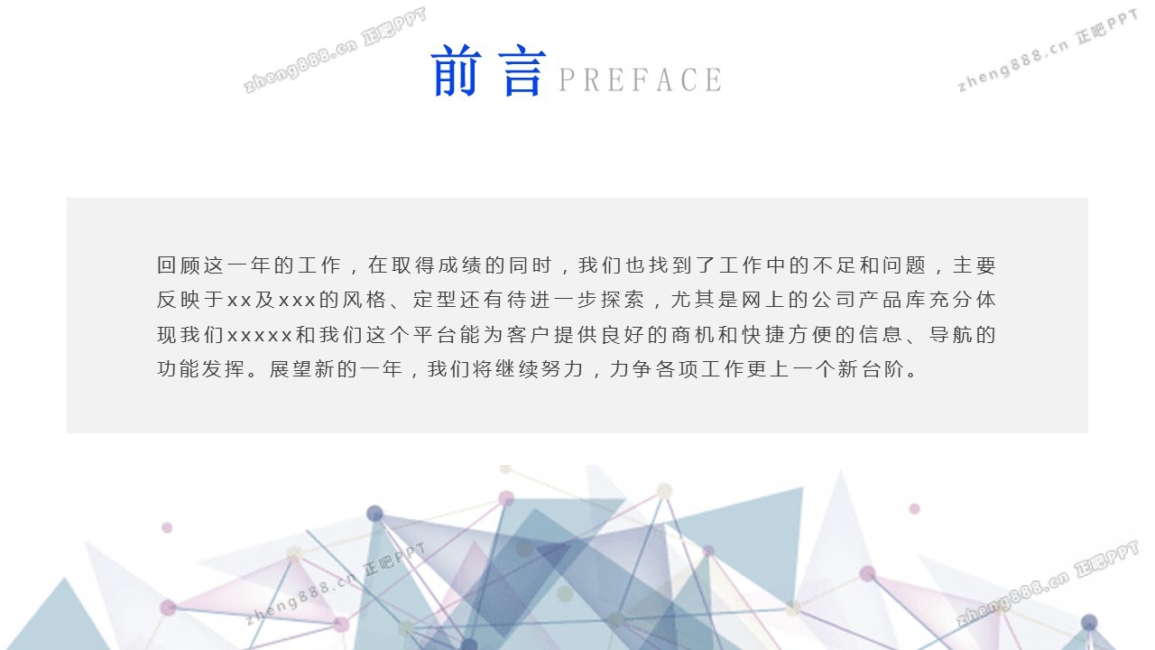 欢迎您访问【正吧PPT】,我们致力于为设计师和泛办公人群提供分享PPT作品。内容涵盖了商业策划、报告总结、教育培训、公务党建等方面的演示模板