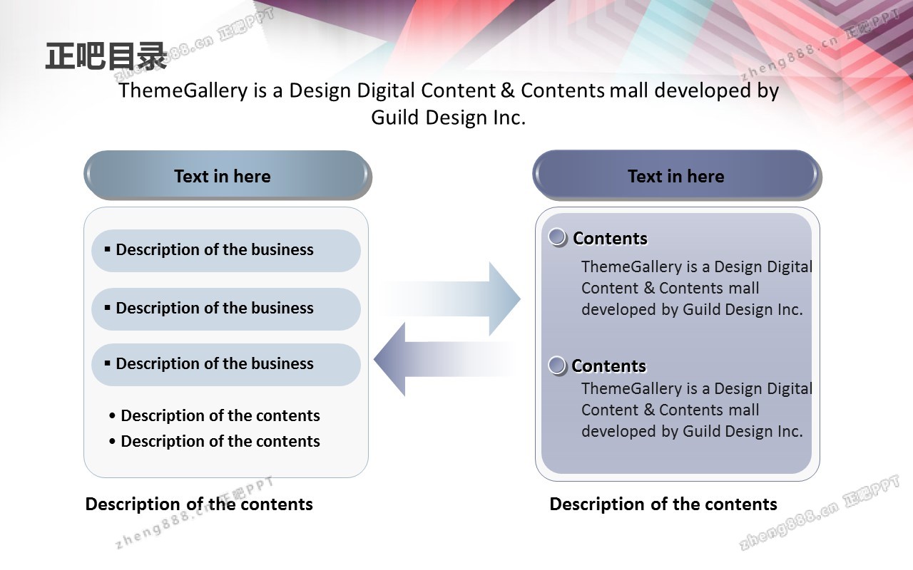 欢迎您访问【正吧PPT】,我们致力于为设计师和泛办公人群提供分享PPT作品。内容涵盖了商业策划、报告总结、教育培训、公务党建等方面的演示模板