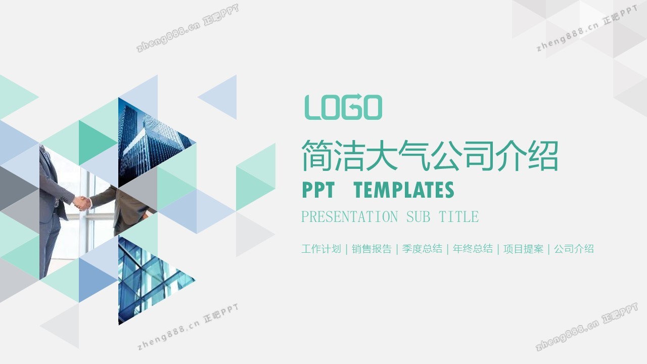 淡雅多边形图片混排的公司简介PPT模板