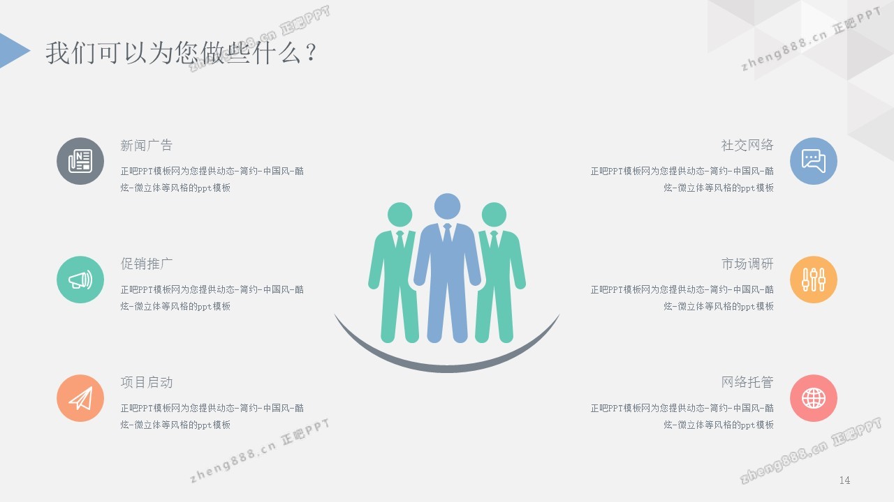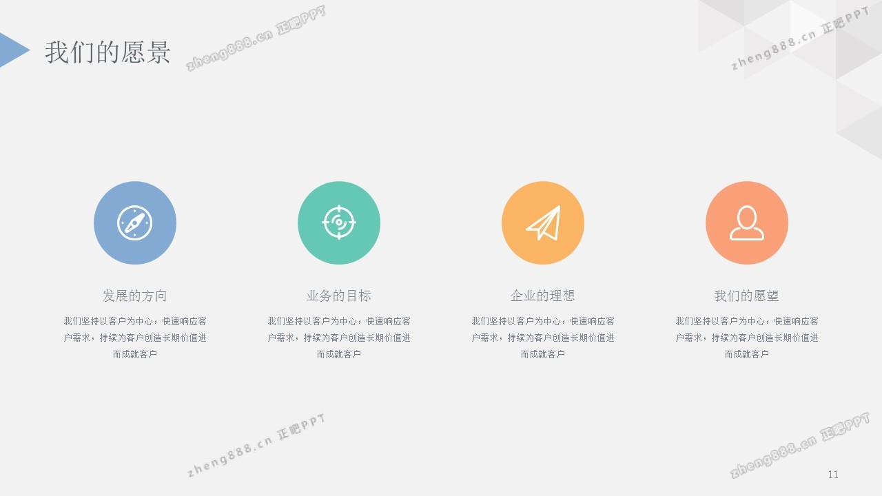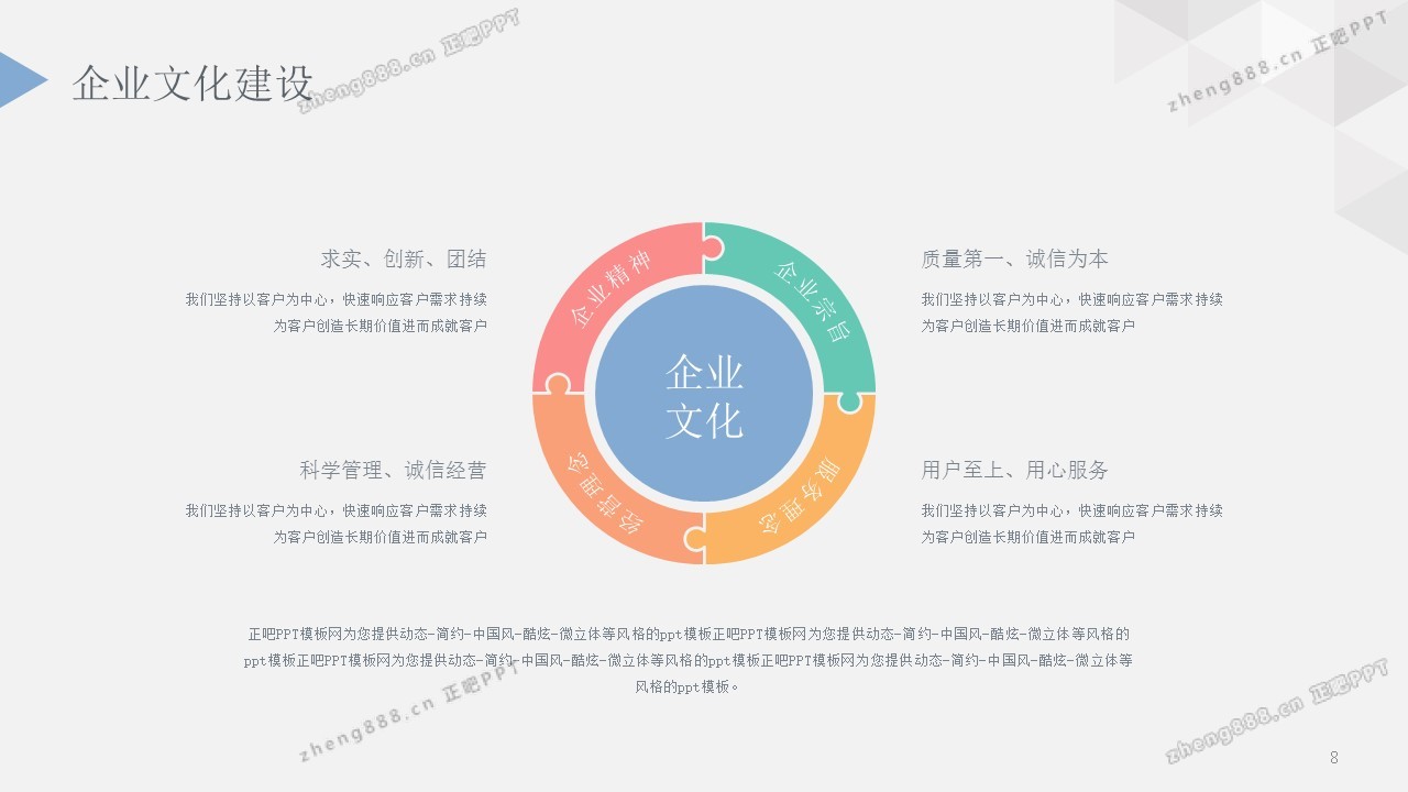欢迎您访问【正吧PPT】,我们致力于为设计师和泛办公人群提供分享PPT作品。内容涵盖了商业策划、报告总结、教育培训、公务党建等方面的演示模板