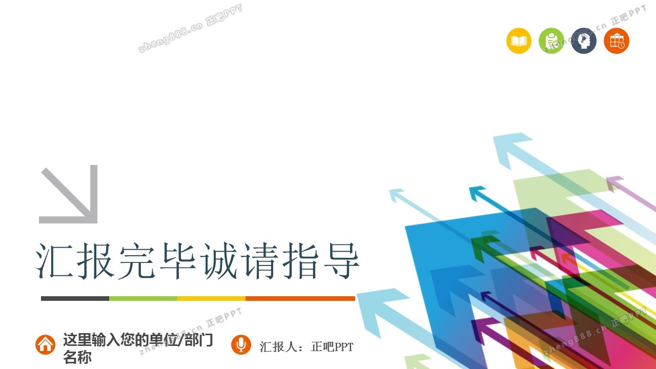 欢迎您访问【正吧PPT】,我们致力于为设计师和泛办公人群提供分享PPT作品。内容涵盖了商业策划、报告总结、教育培训、公务党建等方面的演示模板