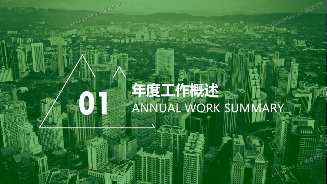 绿色渐变形状叠加背景的工作总结PPT模板