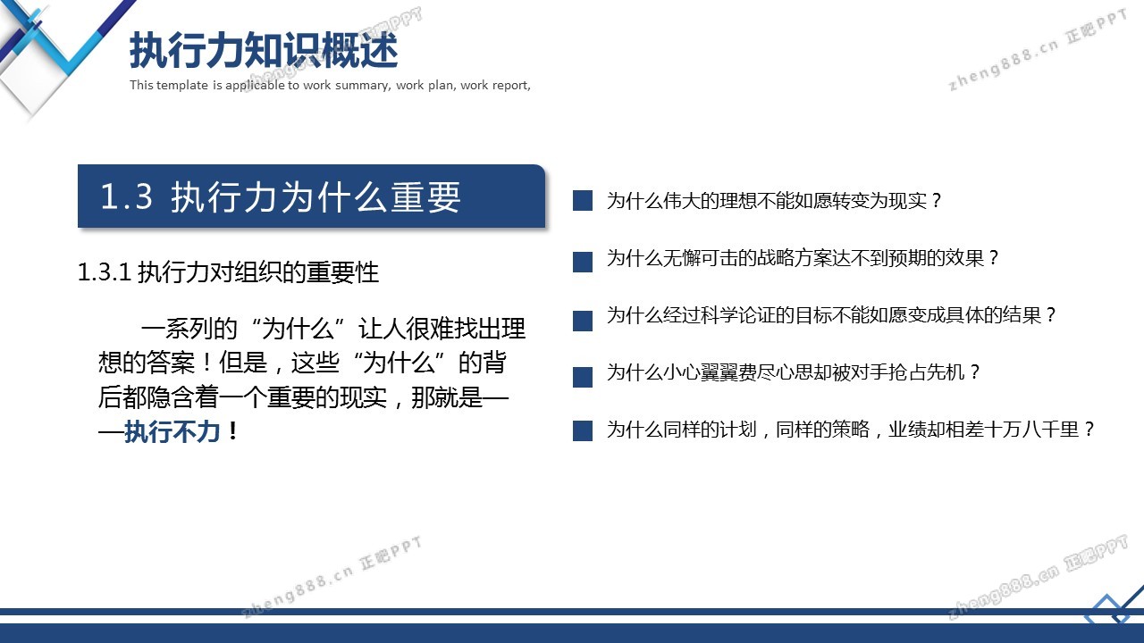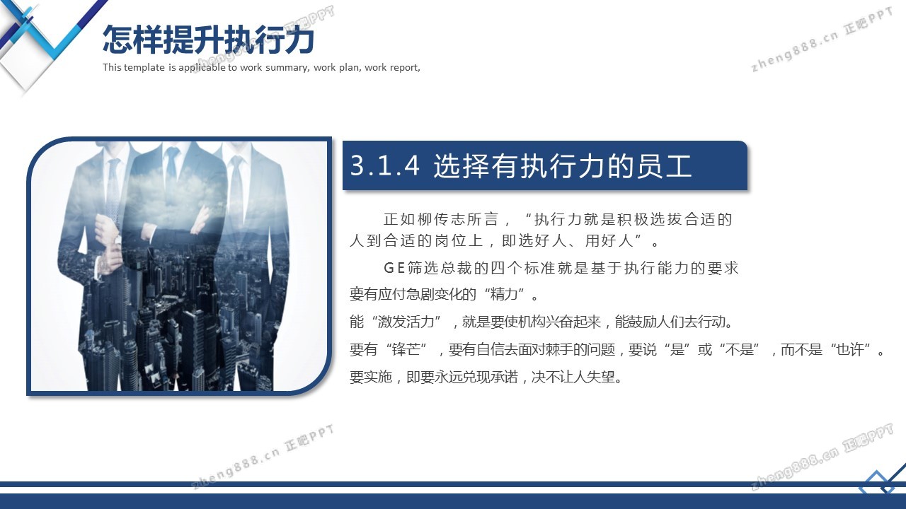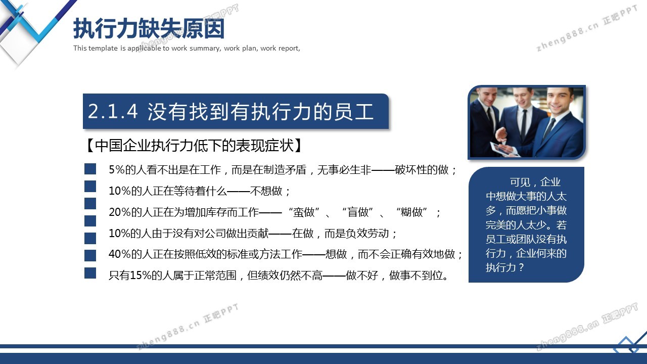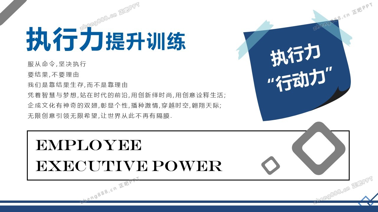 蓝色商务完整企业员工管理执行力培训PPT