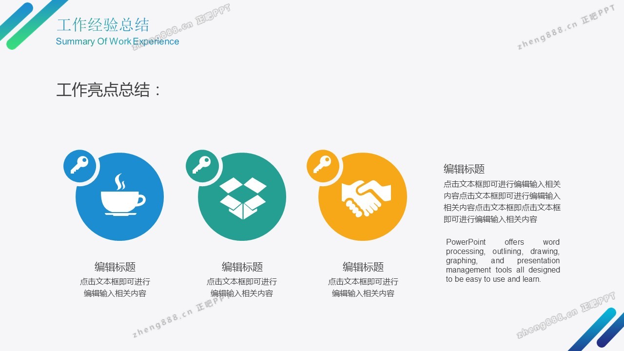 欢迎您访问【正吧PPT】,我们致力于为设计师和泛办公人群提供分享PPT作品。内容涵盖了商业策划、报告总结、教育培训、公务党建等方面的演示模板