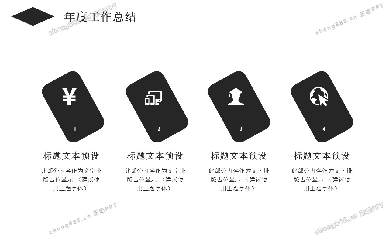 欢迎您访问【正吧PPT】,我们致力于为设计师和泛办公人群提供分享PPT作品。内容涵盖了商业策划、报告总结、教育培训、公务党建等方面的演示模板