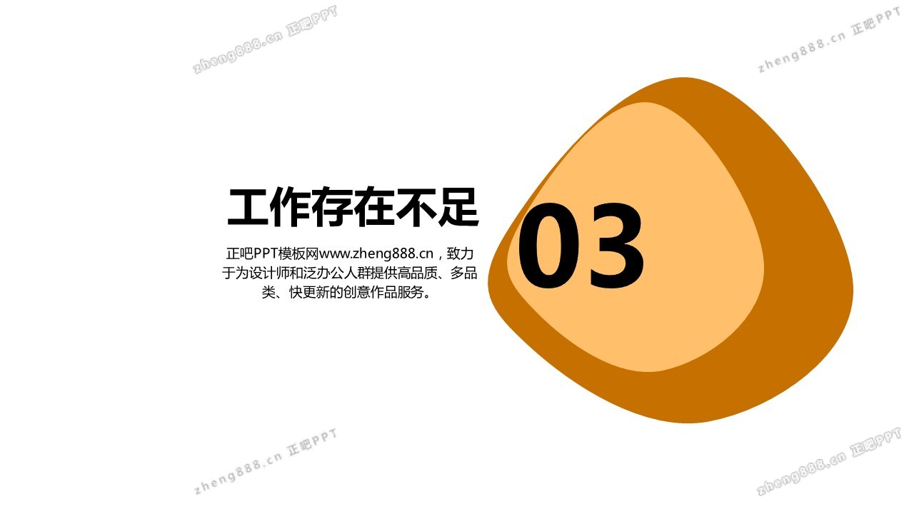 欢迎您访问【正吧PPT】,我们致力于为设计师和泛办公人群提供分享PPT作品。内容涵盖了商业策划、报告总结、教育培训、公务党建等方面的演示模板