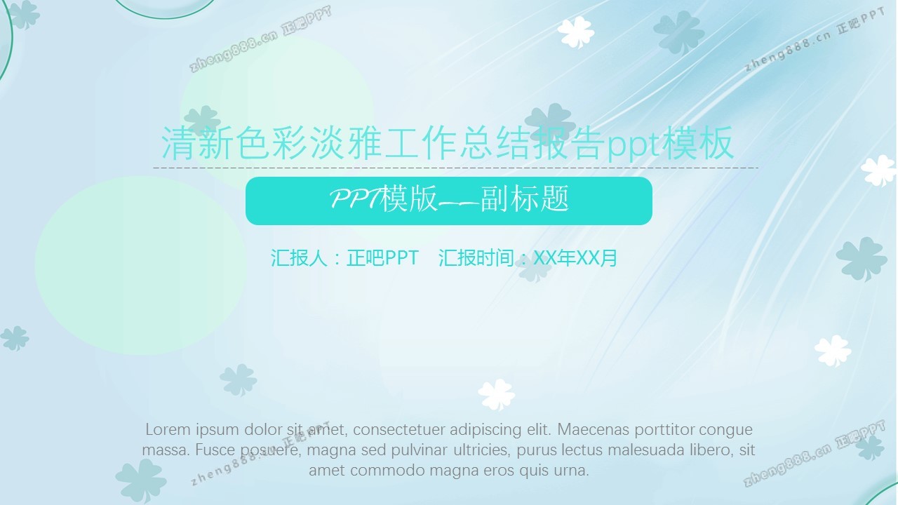 蒂凡尼清新色彩淡雅唯美简约工作总结报告ppt模板