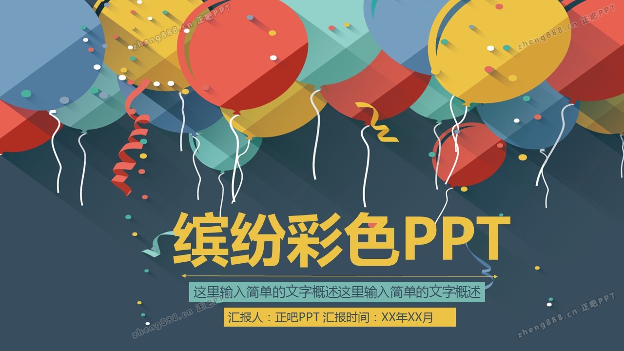 缤纷彩色气球多用途PPT模板