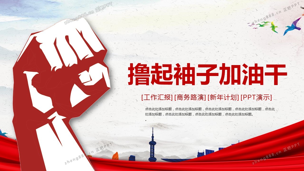 拳头背景的撸起袖子加油干PPT模板