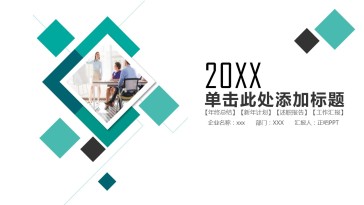 简洁绿色方块背景工作总结汇报PPT模板 25页