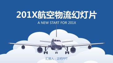 扁平化飞机起飞背景交通行业PPT模板 12页