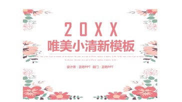 简洁淡雅小花背景的清新文艺PPT模板 24页