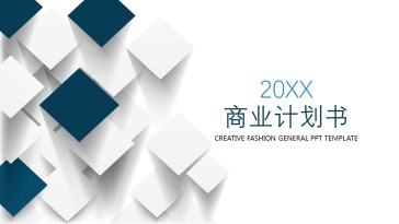 蓝白立体几何体背景商业融资计划书PPT模板 23页