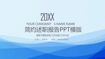 蓝色优雅曲线背景的个人述职报告PPT模板 24页
