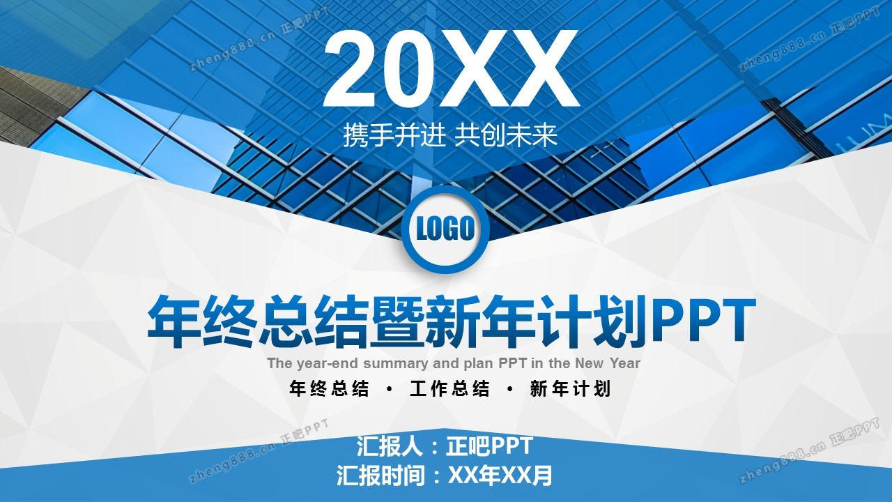 蓝色简约大气时尚年终总结暨新年计划PPT
