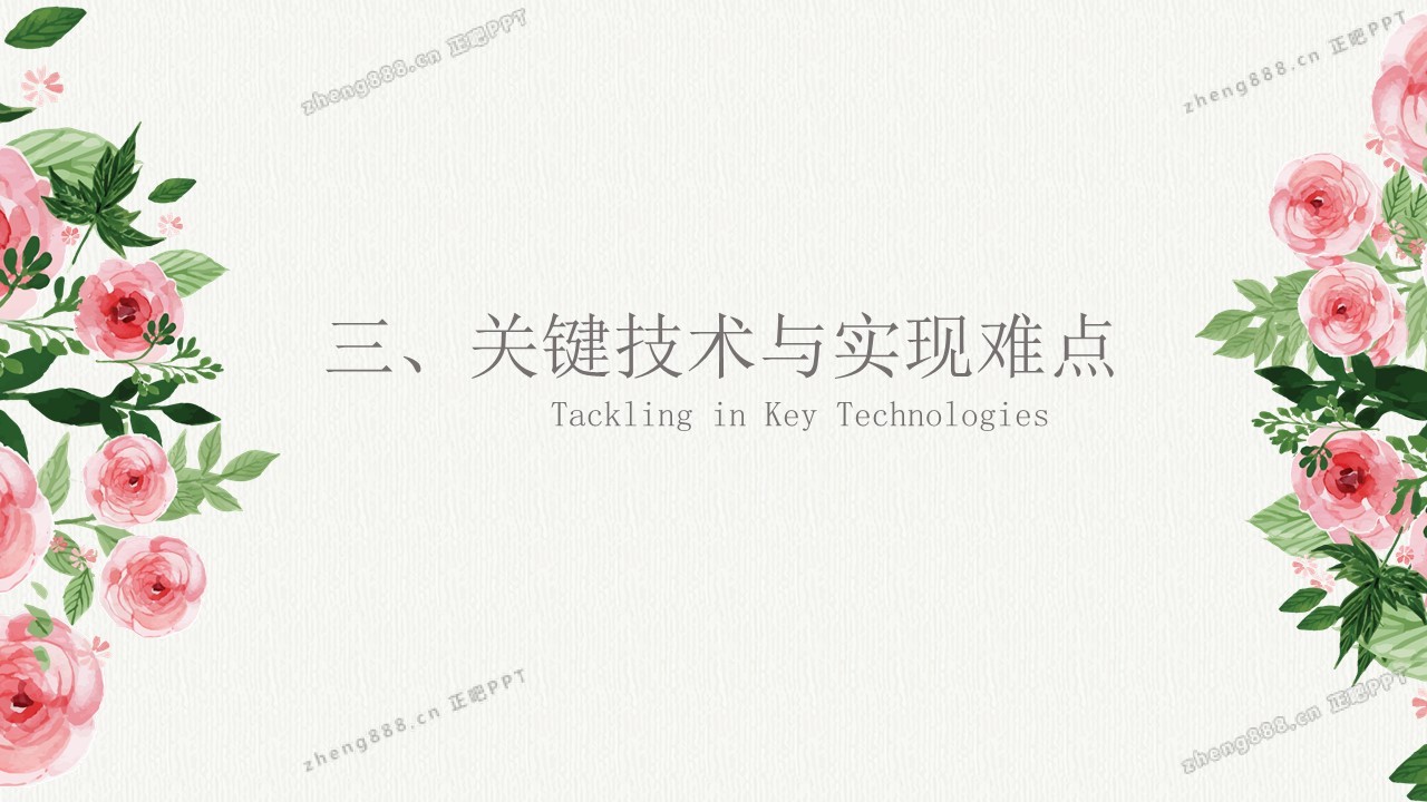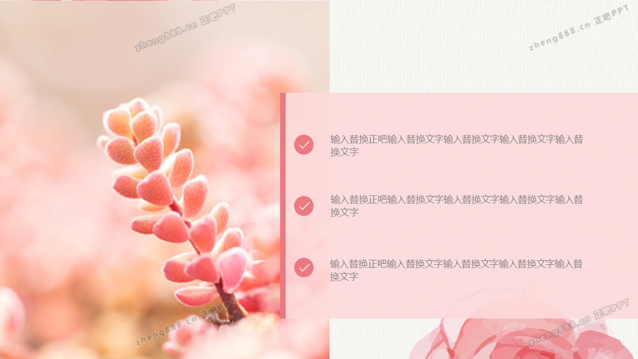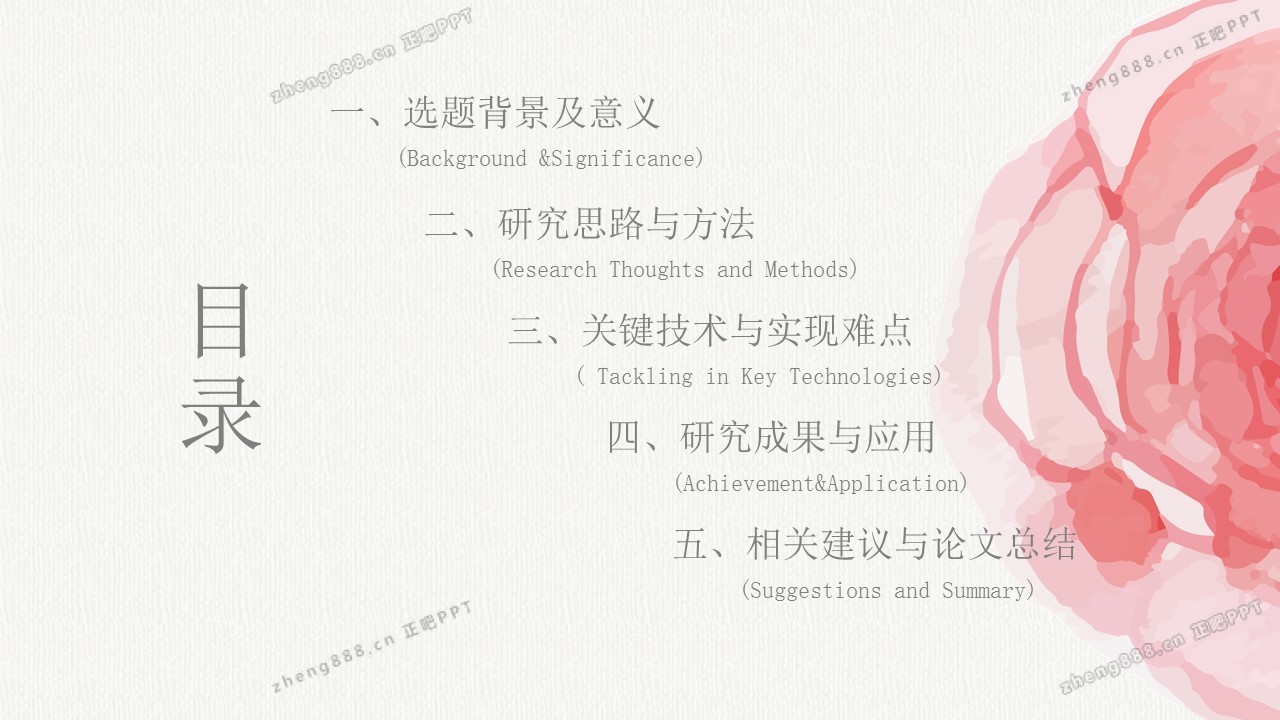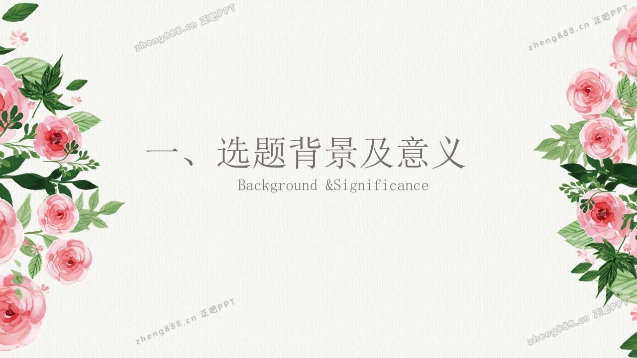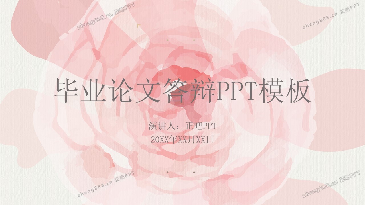 粉色小清新玫瑰花朵毕业答辩PPT模板