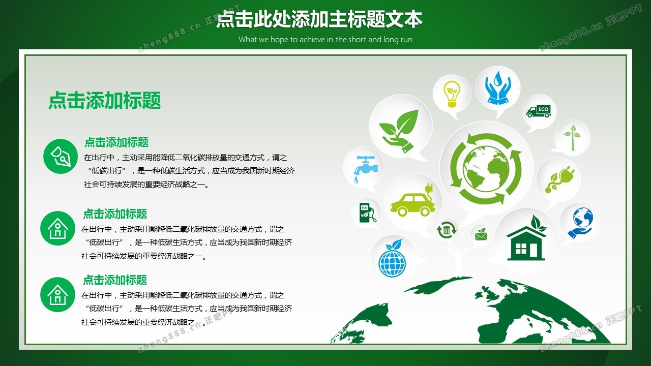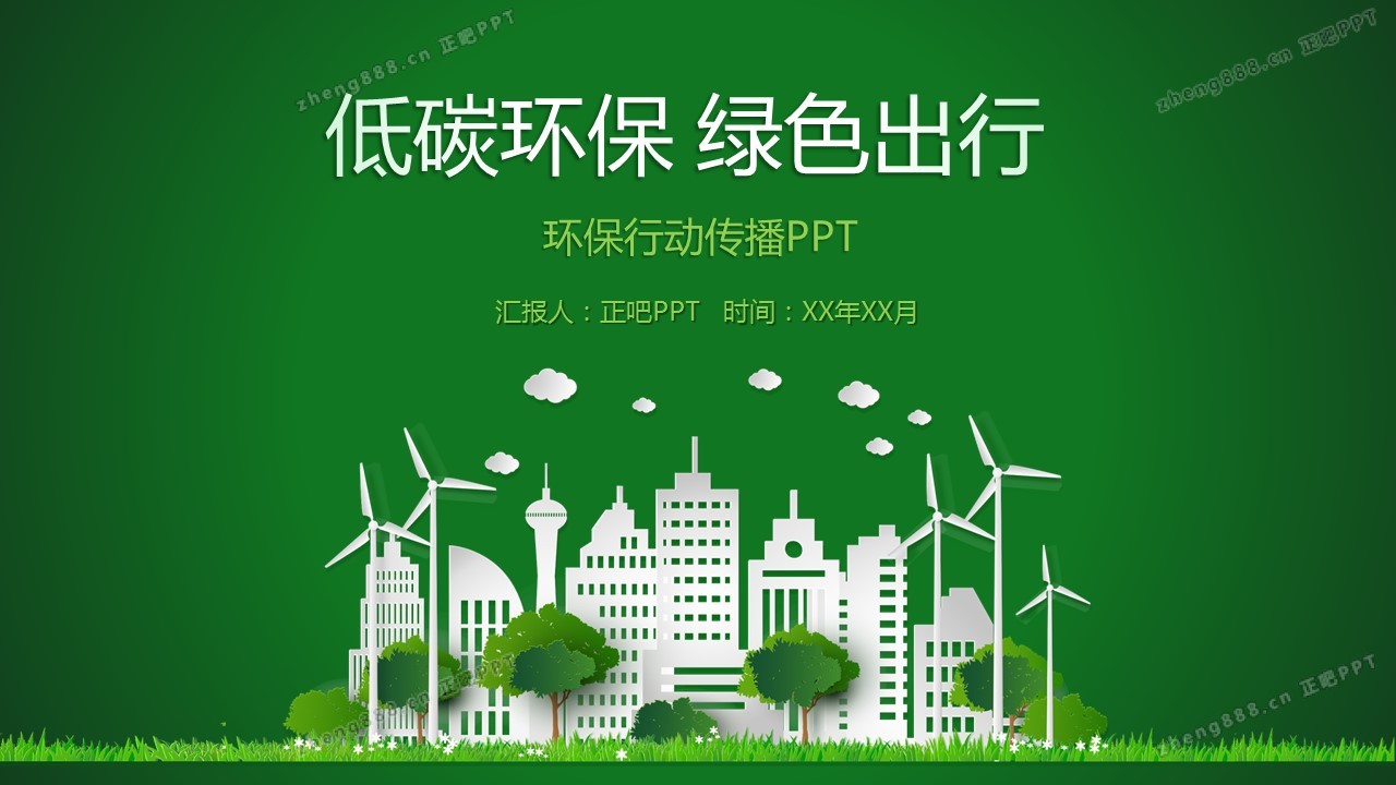 低碳环保绿色出行环保行动传播PPT模板