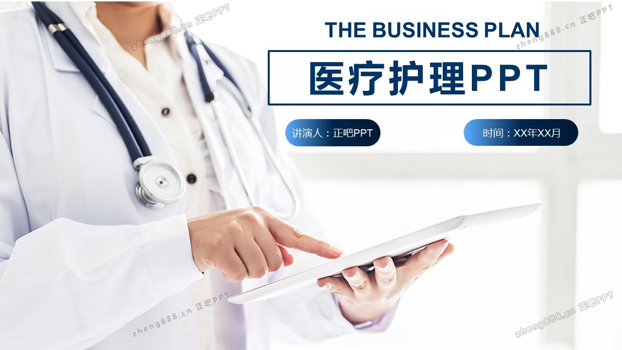 蓝色医疗护理计划总结通用动态PPT模板