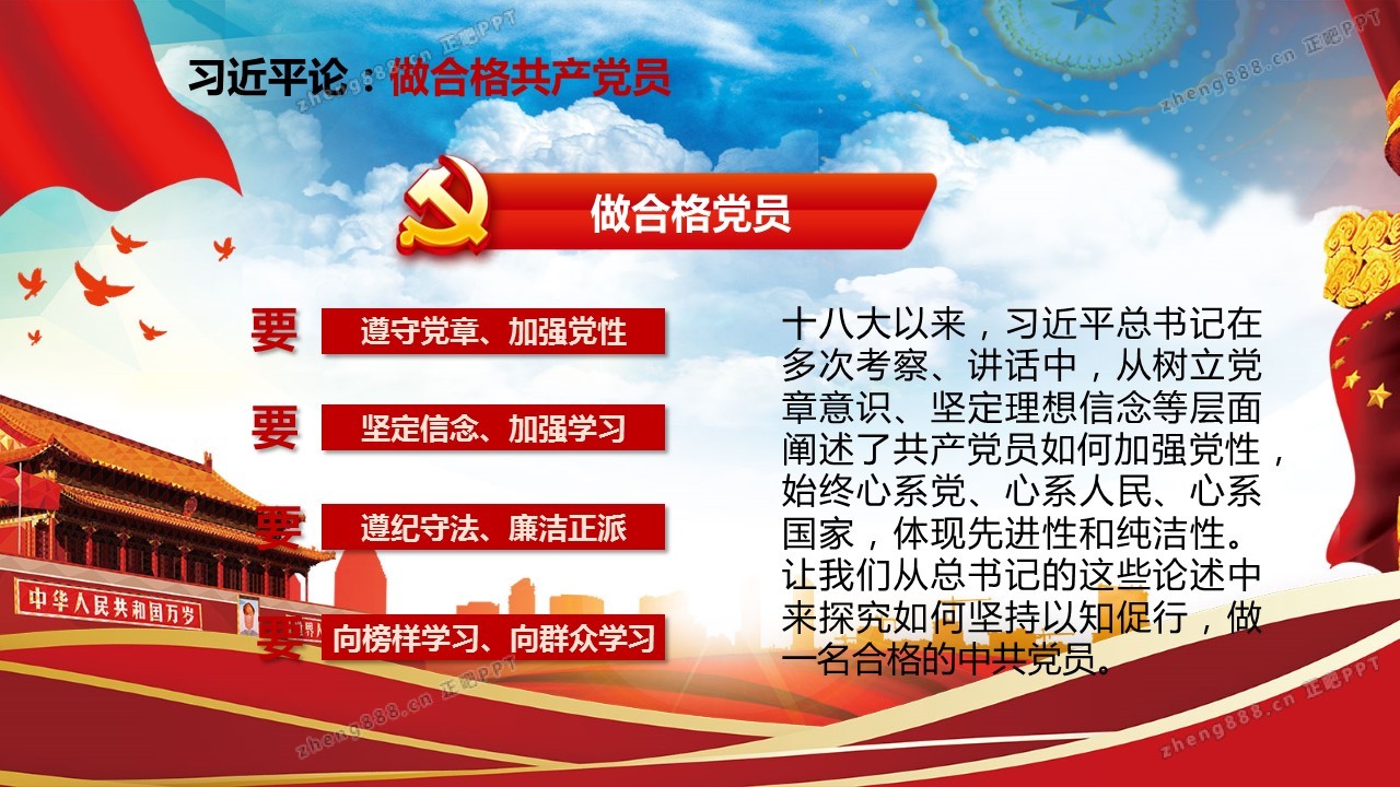中国共产党党员学习心得总结PPT模板