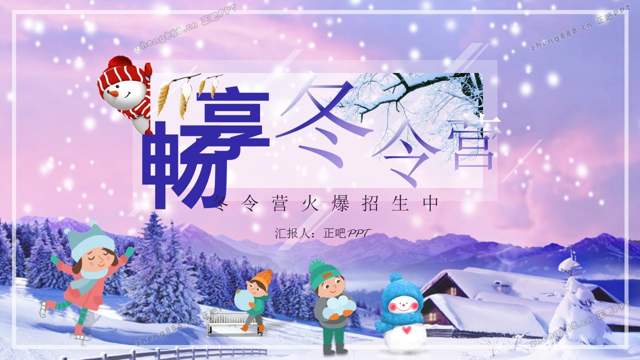 淡紫色小学生中学生冬令营ppt模板
