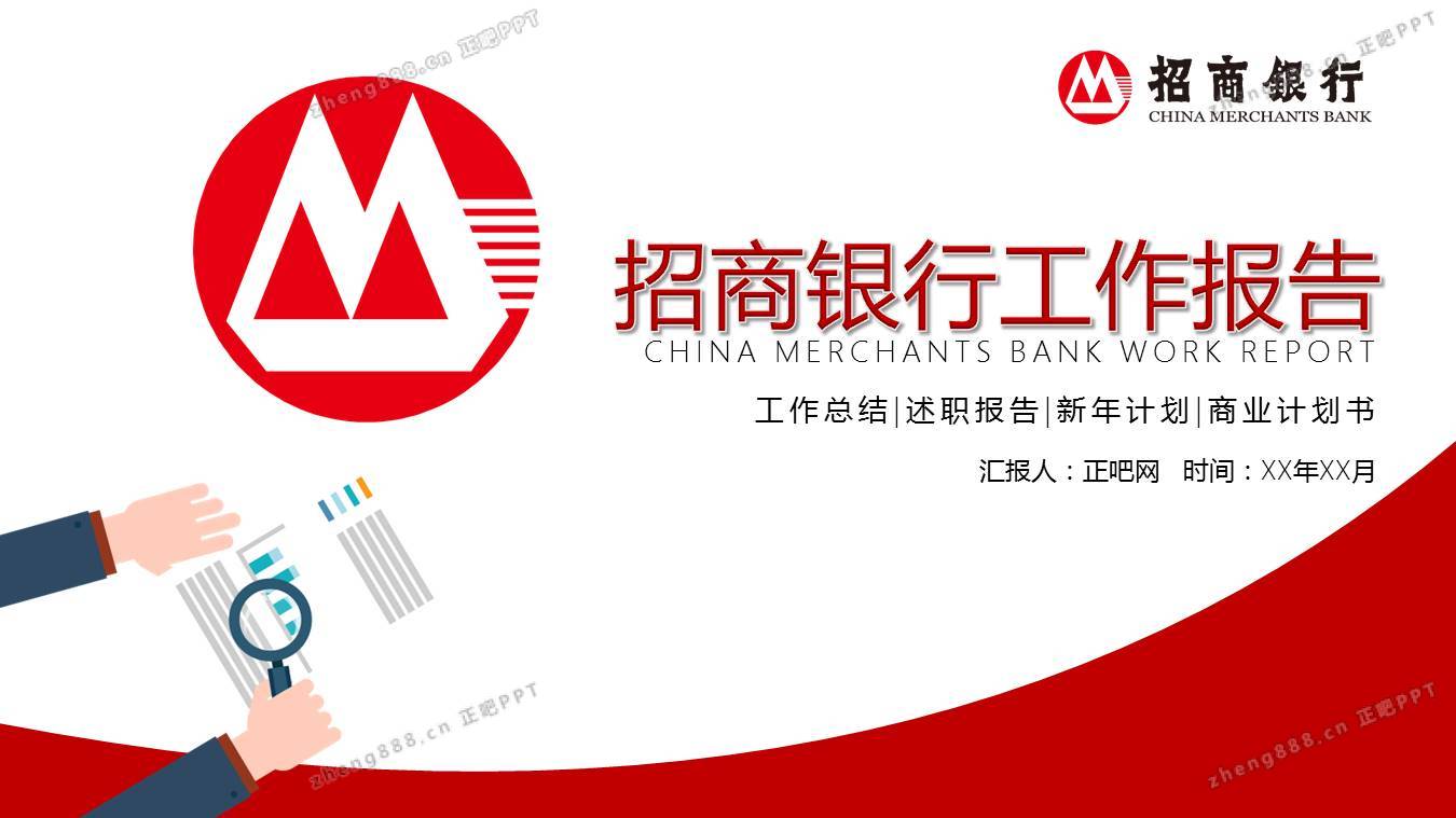 招商银行工作总结动态PPT模板