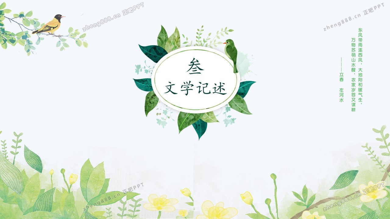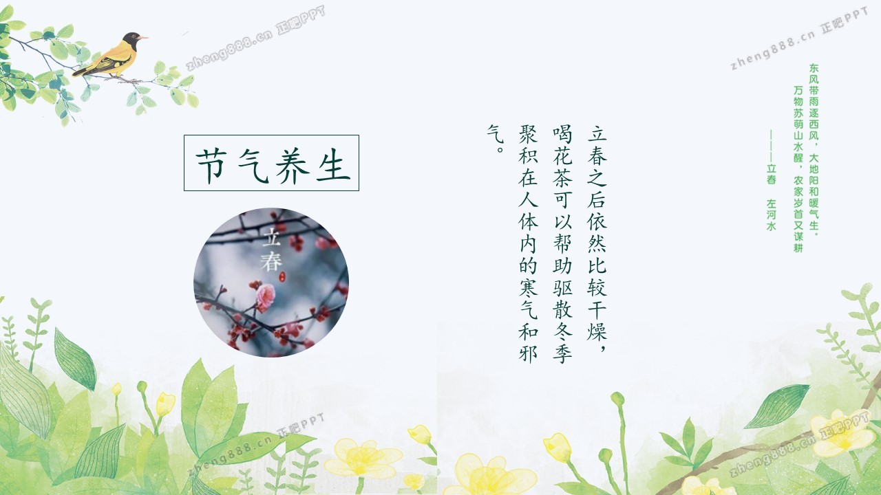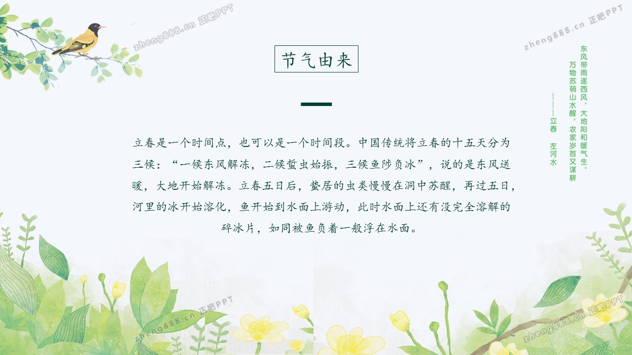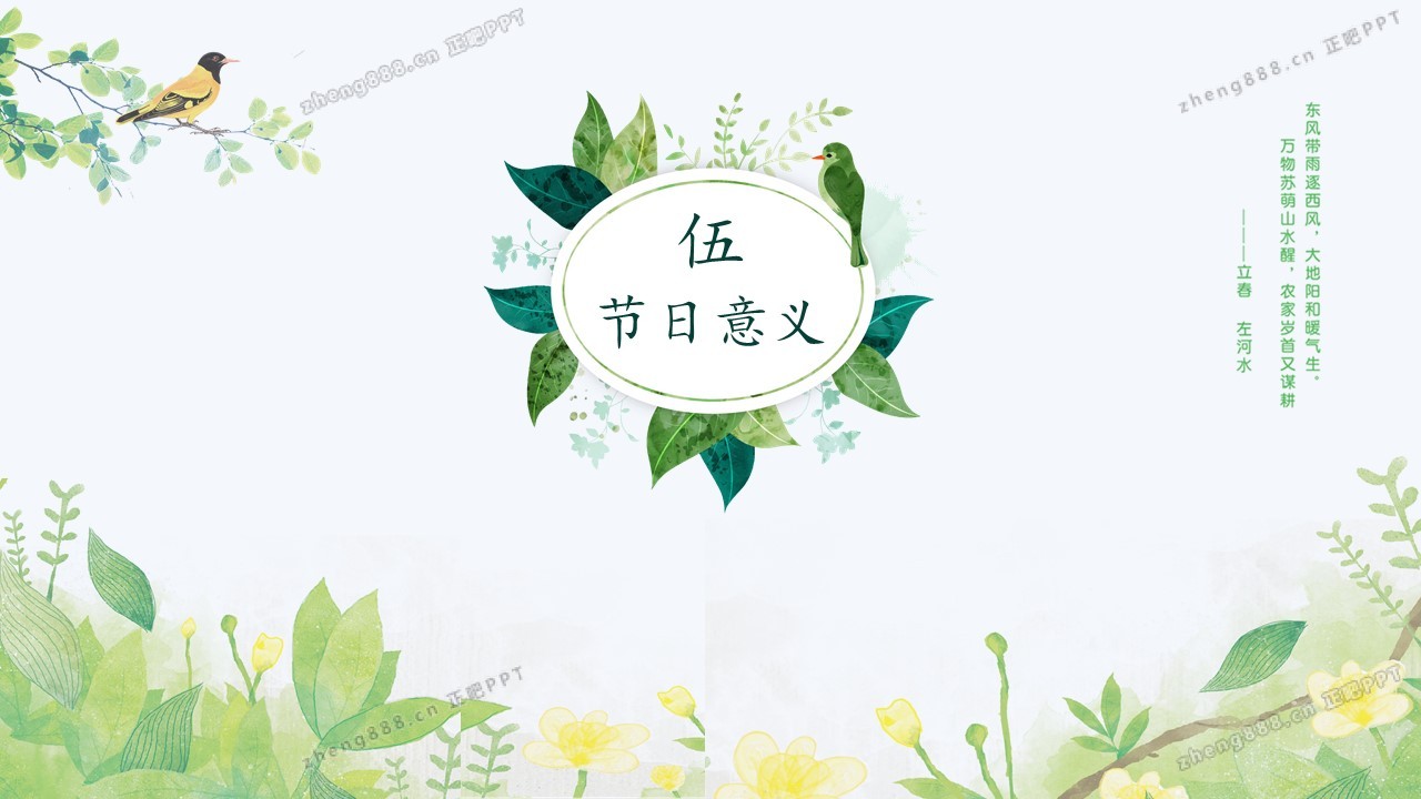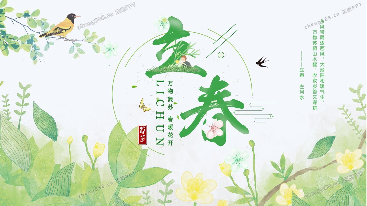 小清新绿色手绘风立春节气介绍PPT模板