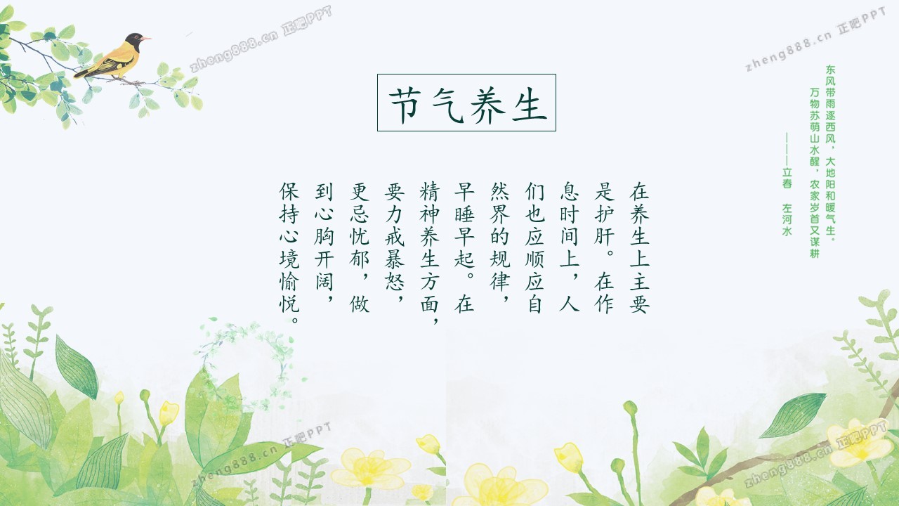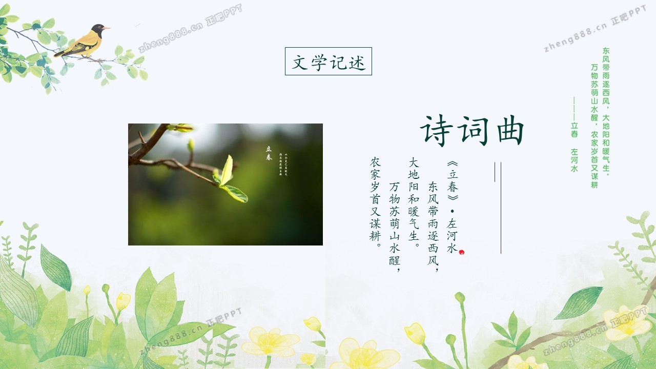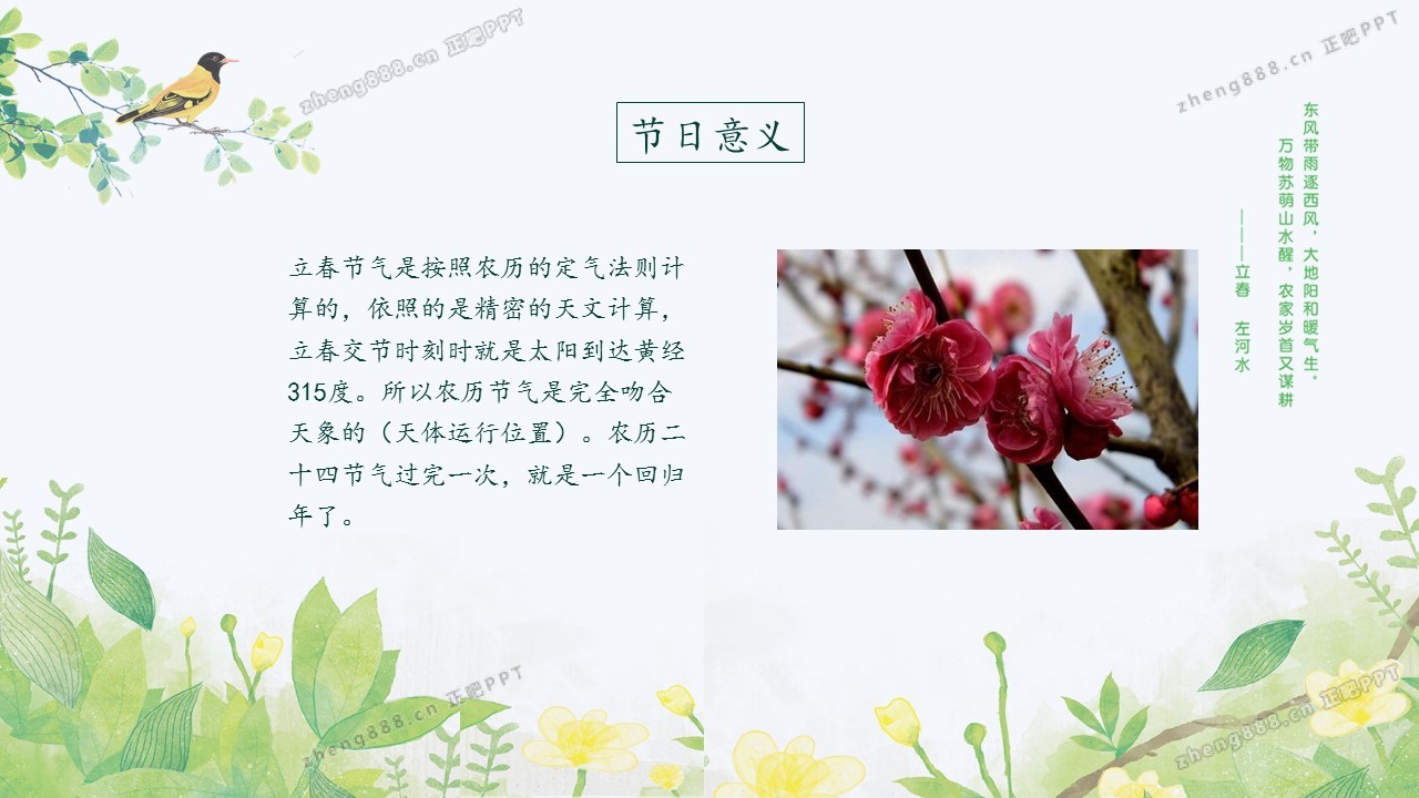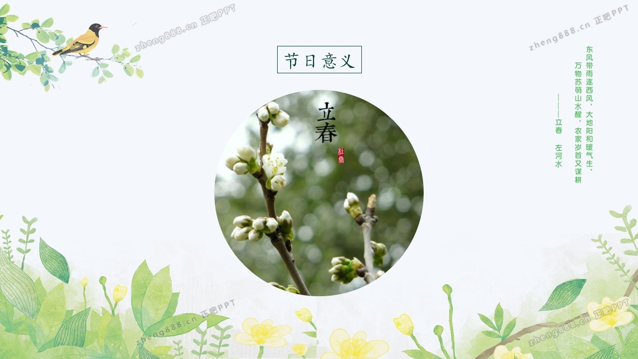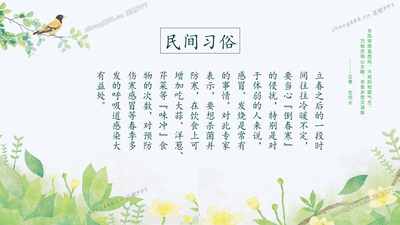小清新绿色手绘风立春节气介绍PPT模板