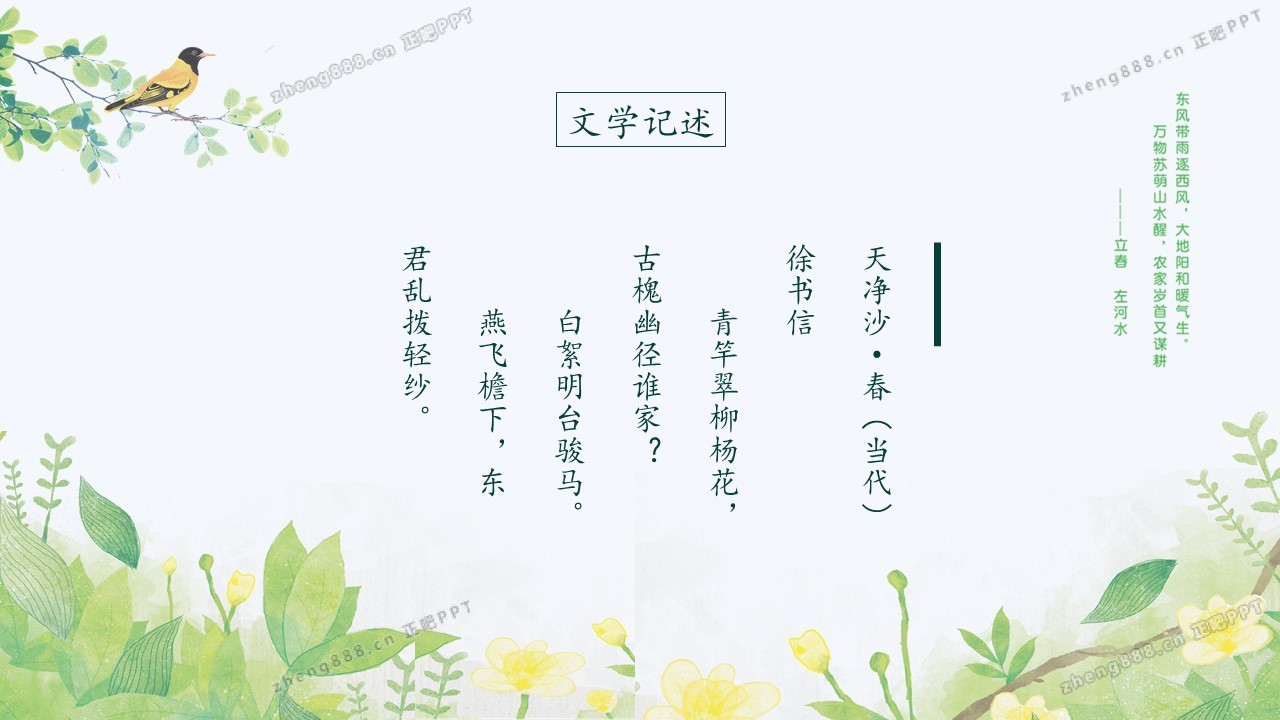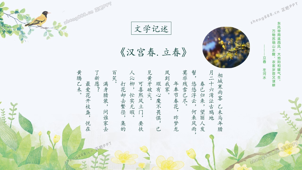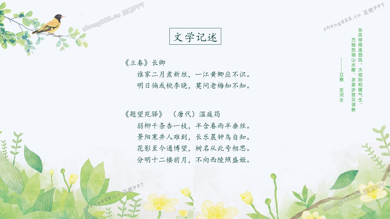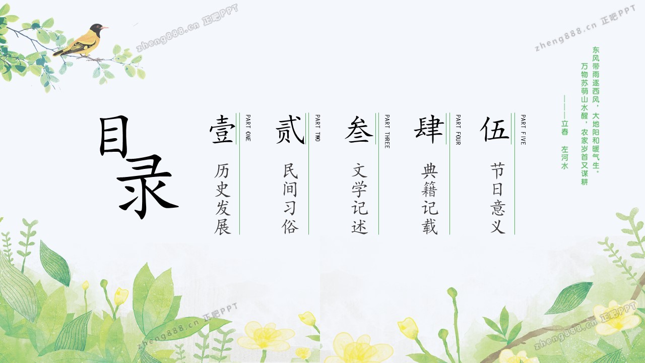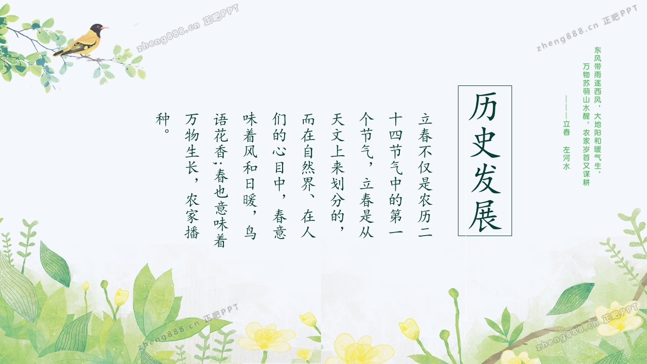 小清新绿色手绘风立春节气介绍PPT模板