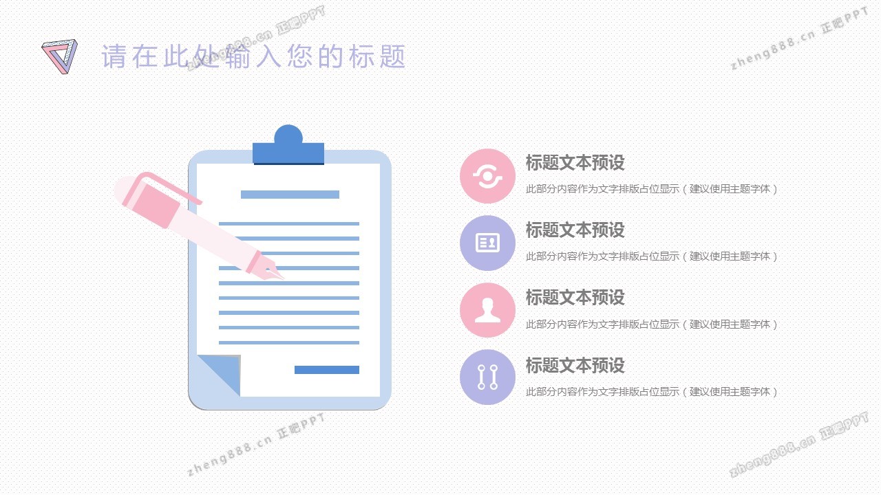 欢迎您访问【正吧PPT】,我们致力于为设计师和泛办公人群提供分享PPT作品。内容涵盖了商业策划、报告总结、教育培训、公务党建等方面的演示模板