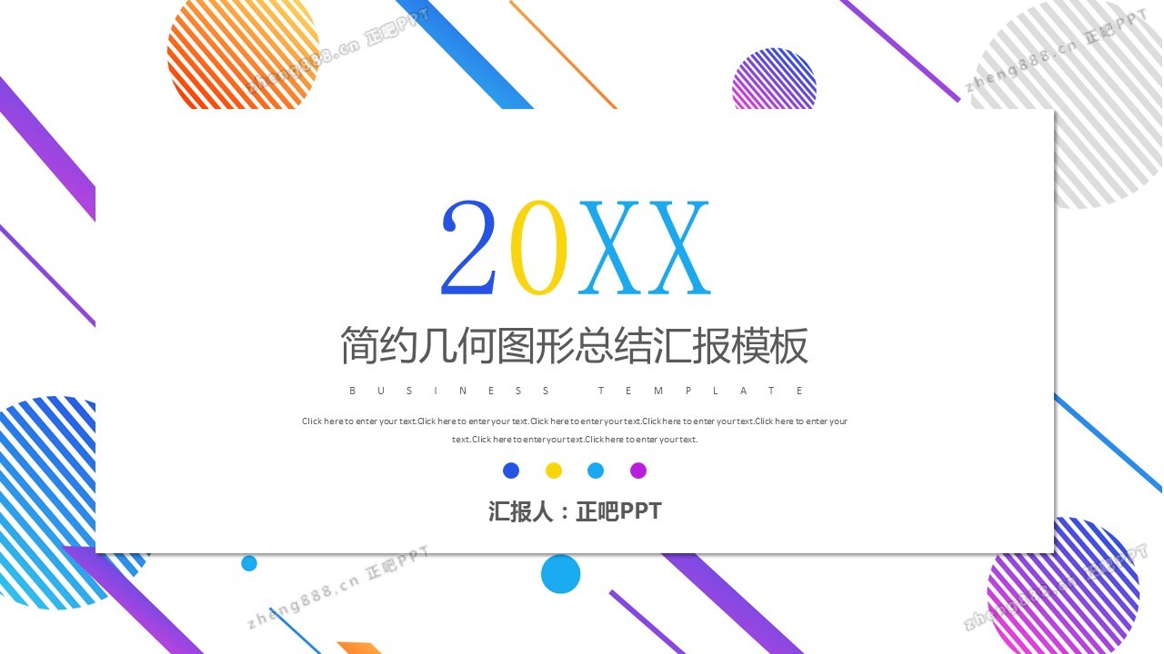 欢迎您访问【正吧PPT】,我们致力于为设计师和泛办公人群提供分享PPT作品。内容涵盖了商业策划、报告总结、教育培训、公务党建等方面的演示模板