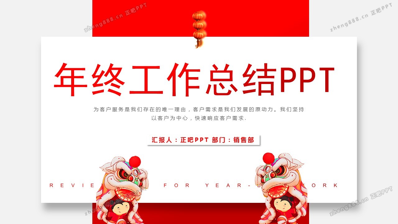 红色商务简约销售部年终工作总结PPT模板