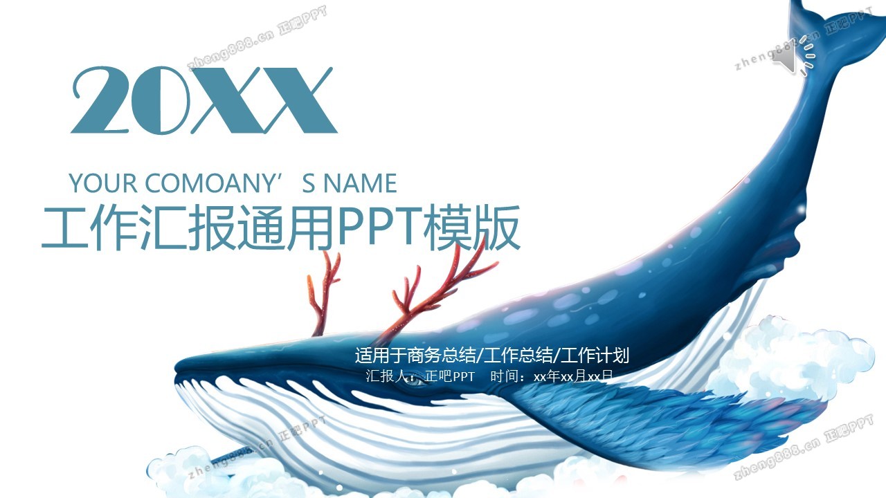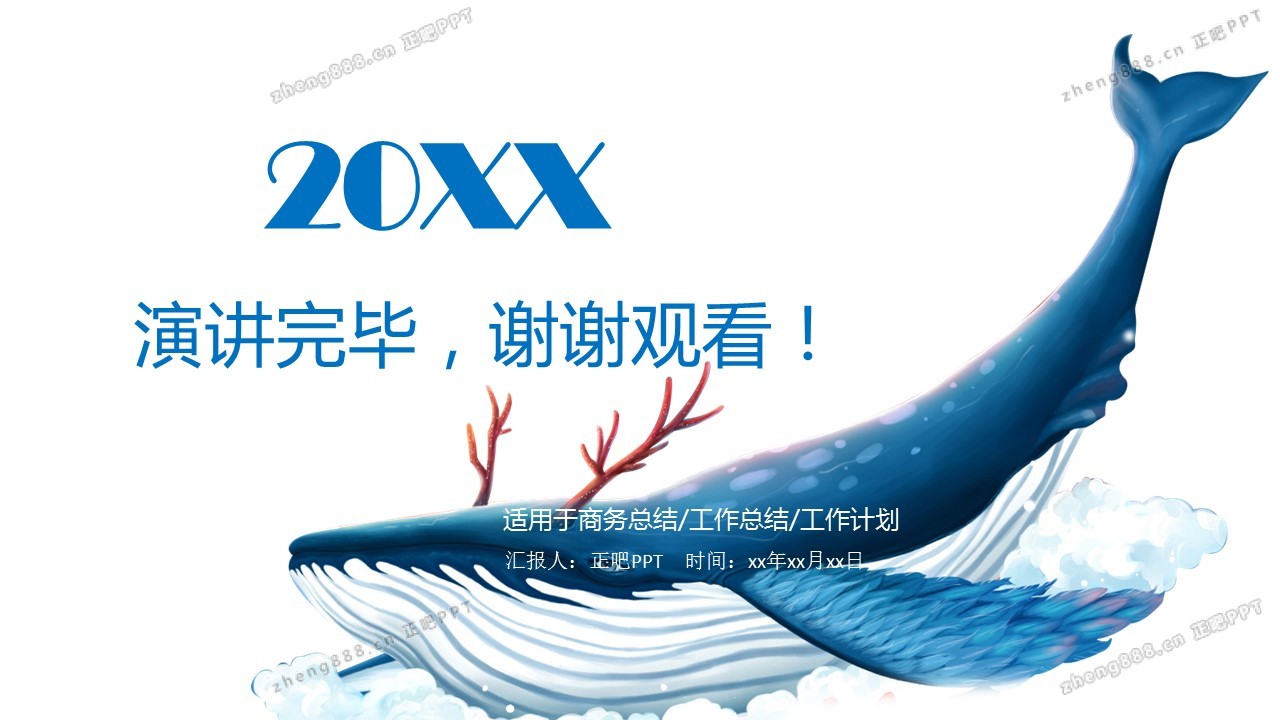 蓝色简约通用鲸鱼商务PPT模板