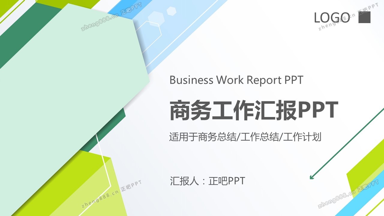 清新蓝绿色商务工作汇报工作总结PPT模板