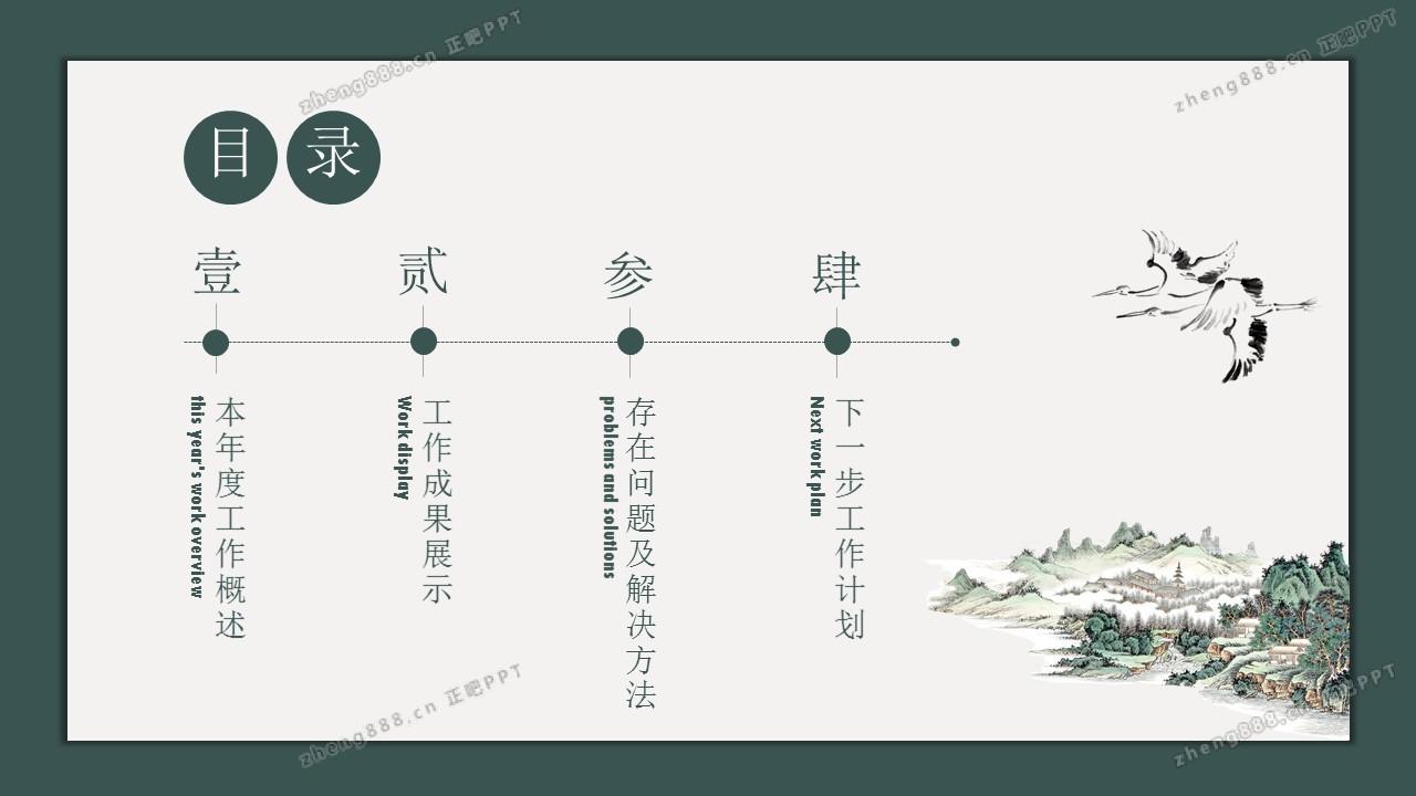 绿色淡雅中国风个人述职报告PPT模板