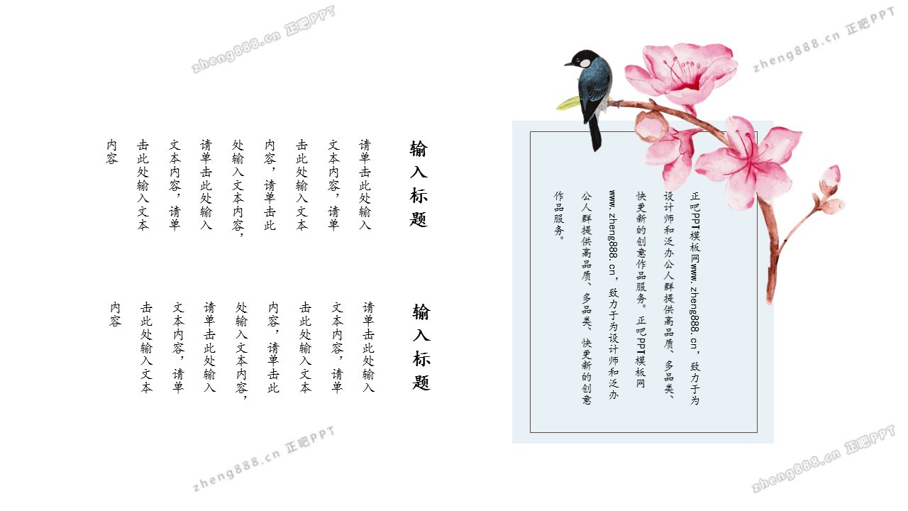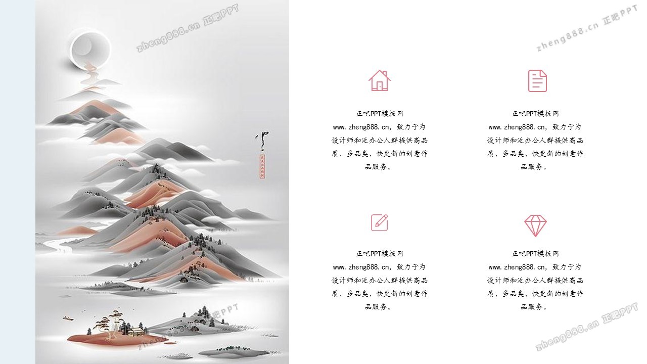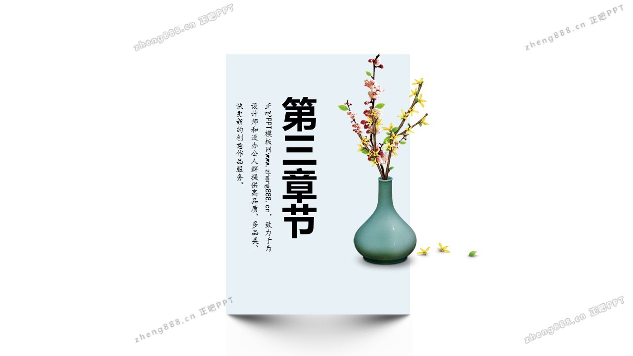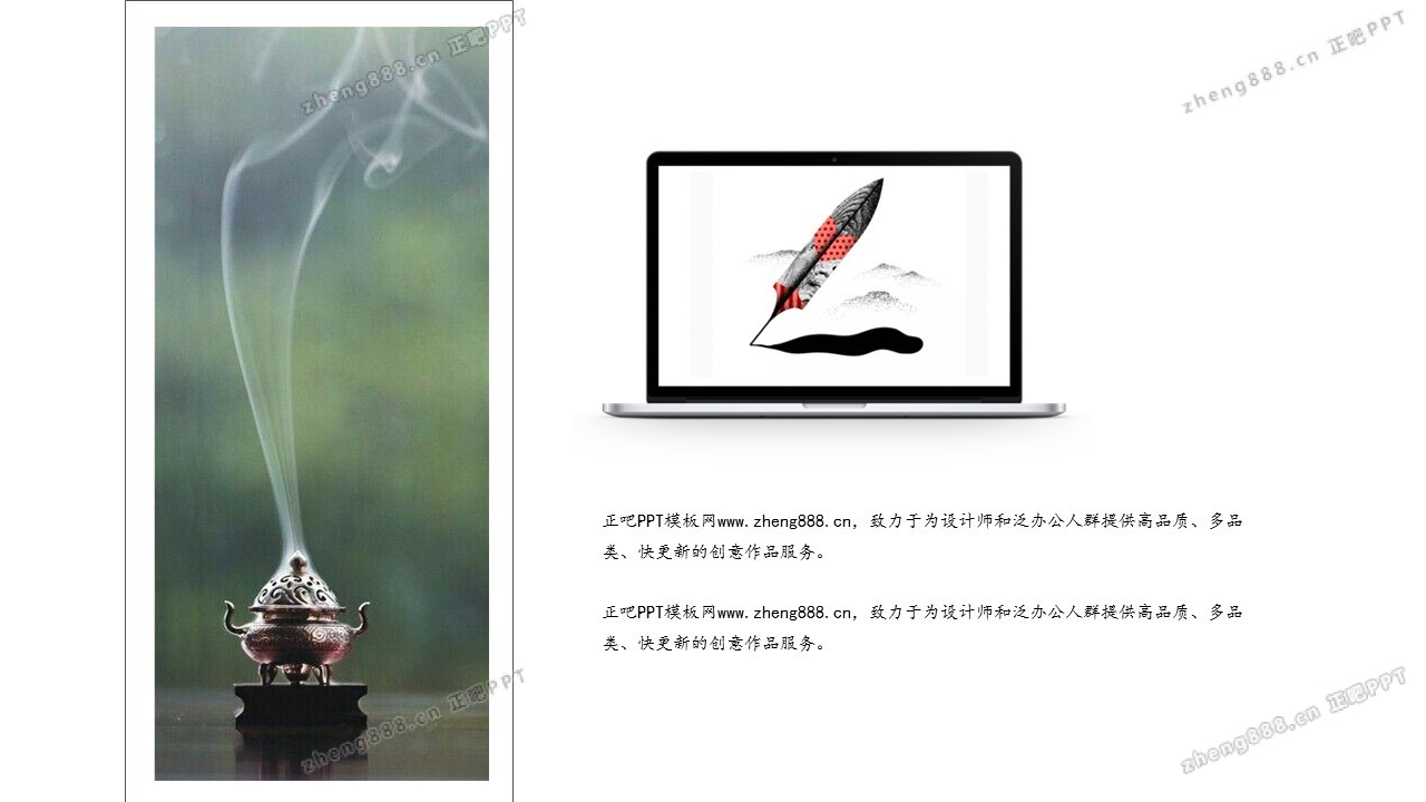 欢迎您访问【正吧PPT】,我们致力于为设计师和泛办公人群提供分享PPT作品。内容涵盖了商业策划、报告总结、教育培训、公务党建等方面的演示模板
