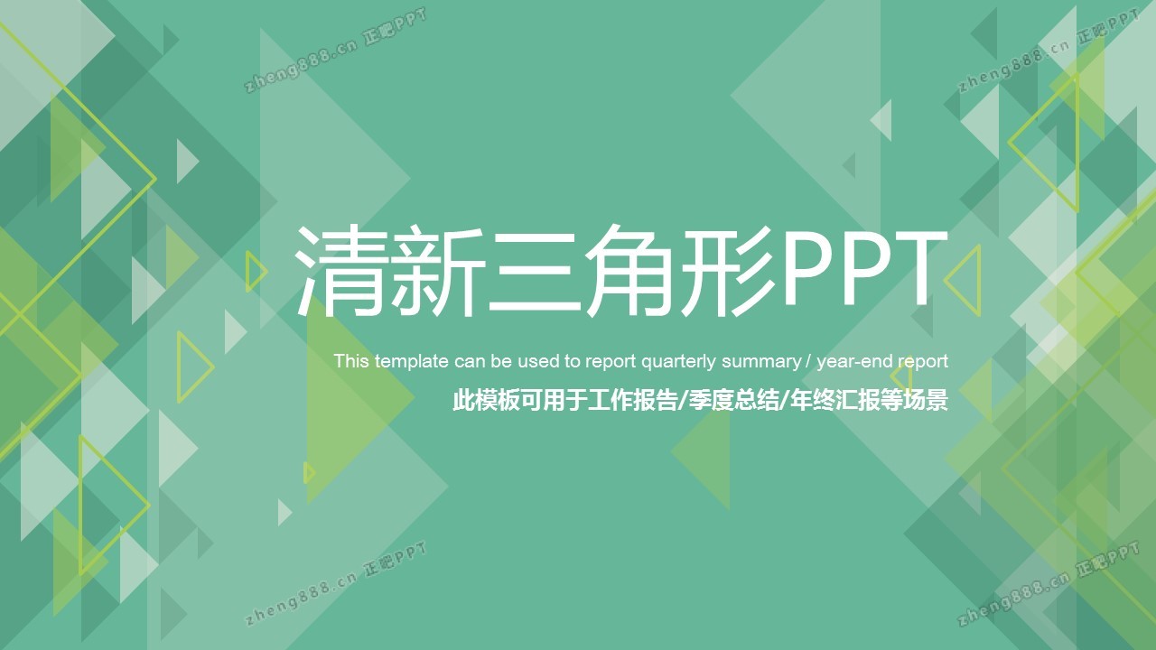 绿色清新三角形背景的工作总结汇报PPT模板